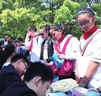4月28日上午,静安区闸北第二中心小学举行了一次爱心义卖。有趣的是,该校的老师和学生在义卖活动上同时举办了签售,老师签售摄影册,学生签售文集。不同的题材,不同的主角,共同的是他们都收获了爆棚的人气。 记者曹莹 摄影报道 学生:用文字记录对学校的眷念 5月,校园即将迎来告别季。闸北二中心的舒玉苗、徐家齐、周欣筠、夏羽青、谢欣凝、王彦婷等几位五年级的同学以合力出书的形式,来纪念自己的小学生涯。他们把自己的文字结集成书,取名《浅夏的约定》。这次学校义卖,他们还做起了新书签售。 记者在现场看到,在学校操场最显眼处有一处醒目的签售台。台上几位五年级的“学生作家”坐成一排,等着签名的书粉排成一列依次上台。台下他们的“粉丝”举着印有他们头像和姓名的KT板高呼偶像的名字,现场气氛热烈,仿佛来到超级巨星的签售现场。这几个小作家在接受采访时诗意地表示,“我们曾相约一起学习,一起嬉闹,一起活动,一起笑,一起哭……离歌渐起,我们用白素的纸,黑色的字,记录下我们的生活,这里有幼稚可笑的故事,有酸甜苦辣的经历,有跋山涉水的收获,有奇思妙想的憧憬。请用心看完这本充满童趣的书,它是我们时光中永远的记叙……” 老师:引领孩子用相机看世界 闸北二中心的信息技术老师郑华是一个80后的大男孩。这次义卖活动,他在学校礼堂举行了他的《时光剪影》摄影作品集的签售会。从工地的建筑工人到路口执勤的警察;从朝阳中的外滩到晚霞中的淀山湖,郑老师的相机记录着这个城市的点滴。但在郑老师的镜头下,最多的还是学校同学们的身影。 郑老师不仅自己酷爱摄影,还从2010年起组建了一个摄影社团——“华尚摄影室”。迄今为止,这个社团已经培养了约400位少儿摄影爱好者,也涌现出一批出色的作品。陈予童同学的《欢乐喜剧人》荣获了佳能全国青少年专业组铜奖;张越舟同学的《日落》、颜展江同学的《炫丽》、周家榆同学的《战士》、孙馨宇同学的《传承》分获国际青少年儿童摄影大赛的一、二、三等奖。“华尚摄影室”社团同学的作品也成了《东方少年》“缤纷墙”版的常客。 郑老师的这次签售会,也得到了同学们的热烈响应,签售之前,同学们纷纷献艺给老师的签售会暖场,有同学穿着汉服弹古筝;有同学穿着公主裙奏钢琴。大家把老师的签售会变成了音乐会,好不热闹! 从大操场到大礼堂,两个签售会的主角们都神采奕奕,丝毫不逊于眼下当红的明星,同学们都说,他们就是学校里的super star!