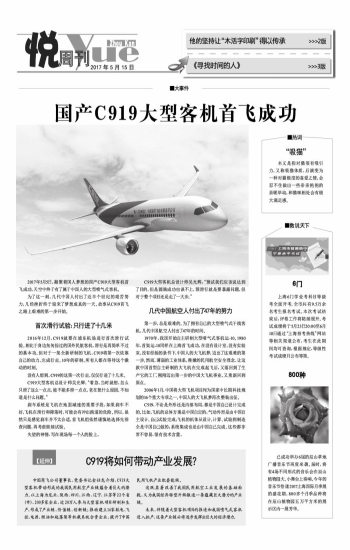国产C919大型客机首飞成功
