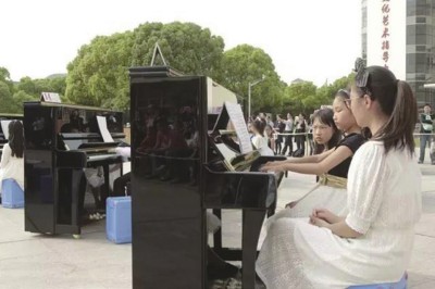 为培养学生健康的审美情趣,良好的艺术修养,通过合作体验活动享受艺术熏陶、快乐成长的过程,展现少年儿童积极向上的艺术风采,5月6日下午,“琴声飞扬”——2017年浦东新区青少年活动中心百人钢琴合奏活动在浦东新区青少年活动中心北广场举行。 气势磅礴的《加勒比海盗主题曲》拉开了当天活动的序幕,学生们精湛的演奏感染了全场人员;德国钢琴家Martin Dombrowski作为此次活动的特邀嘉宾,给孩子们带来了四手联弹《胡桃夹子》选段和由三首中国民歌改编的《幻想曲》,而他和孩子们一起合作的中国作品《茉莉花》将活动推向高潮;《演艺人》、《小小世界》、《土耳其进行曲》、《匈牙利舞曲第五号》、《蓝色多瑙河》等作品将在场的观众带入了美妙的音乐殿堂;整场活动在斗志昂扬的四手联弹《保卫黄河》中结束,师生共同的演绎带来了持久的掌声。 本次活动在广场上大规模地摆放钢琴打破了传统的演出模式,广场既是舞台又是观摩区域,恰当的融合拉近了演员与观众间的距离,并且采用师生同台的演出形式,也更好地激发了学生的演奏热情。