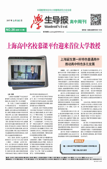 上海诞生第一所特色普通高中推动高中特色多元发展