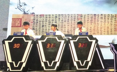 当青春遇上千百年积淀之国学,会迸发出怎样的精彩?5月13日,“红领巾国学达人”挑战赛总决赛在上海教育电视台举行。“国学小达人”,在国学舞台上一展风采,尽情抒发对传统文化的热爱。最终,来自杨波外国语小学的张致远、丽英小学的江道晟、铜川学校的李陶然分获前三名。 记者 曹莹 摄影报道 据悉,本次比赛由市委宣传部、团市委、市教委、市少工委、复旦大学、市红理会联合举办,今年已经是第三届。受到春节期间《中国诗词大会》的带动,全市有超过10万少先队员报名参赛,感受了一场特别的国学之旅。 当天比赛共分两个阶段,分别为晋级阶段和决胜阶段。 在晋级阶段中,10位选手进行了旗开得胜、眼疾手快、环环相扣三个环节,分别对应必答题、抢答题和条件题。三个环节后积分排名前三的选手晋级了决胜阶段,其余7位选手直接淘汰。 在决胜阶段中,3位选手进行步步为营、出口成诵、七步成诗三个环节,分别对应明物题、诵读题和飞花令。最终按照选手六个环节后的总分决出本场比赛最终名次。若有选手积分相同,则进行加赛。加赛采用抢答形式,答对得分答错扣分,直至最终分出高下。 今年春节期间,一档《中国诗词大会》的综艺节目火爆大江南北,其中,最具有对抗性也最吸引观众的是“飞花令”环节。这次“红领巾国学达人”总决赛也在最后“七步成诗”环节引入“飞花令”。大屏幕上打出一个字,三个选手轮流背诵出含这个字的诗词。当台上选手背诵出一句冷僻的诗词时,台下阵阵喝彩;当台上三个小选手集体卡壳,连最常听闻的诗词也忘了背诵时,台下的观众急得忍不住小声背诵。看来,这场比赛不仅是国学储备知识的竞赛,也是心理素质的竞赛。最后沉着冷静的张致远笑到了最后。 【选手风采】 张致远:受父亲影响从小背诵经典 小冠军张致远说,自己已经记不清楚多大开始接触国学知识的,自己父亲就很有国学底蕴,从小耳濡目染受父亲影响就喜欢背诵国学典籍。张致远父亲在接受采访时也表示,家里有很多传统文化典籍的藏书。家长对他的期望也是全面发展,所以也会平衡课外补习班与自由阅读之间的时间安排。 丁伽文:平时就爱用古文写作 不仅最终进入决胜环节的三个同学个个功底深厚,止步于决胜阶段门外的“遗珠”们实力也不可小觑。七宝外国语小学四年级的丁伽文以复赛第一的成绩进入当天的决赛,遗憾的是在当天晋级阶段的比赛中发挥失常,止步于前三。他自小酷爱古文,读书秉承孔子“为己之学”和孟子“求其放心”的理念,经、史、子、集,无不涉猎,甚至平时时不时还要来点原创小古文。有一次,他希望老师安排他的好朋友当他的同桌,还写了篇小古文向老师述说心愿。在前一周于复旦大学举办的“国学达人”复赛现场,他也用古文写了一篇评论。
