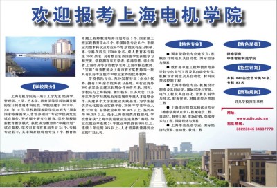 【学校简介】 上海电机学院是一所以工学为主,经济学、管理学、文学、艺术学、教育学等学科协调发展的全日制普通本科院校。学校创建于1953年,2011年10月,学校被国务院学位办列为“服务国家特殊需求人才培养项目”专业学位研究生试点单位,开始硕士研究生教育。学校积极创新教育教学模式,获批成为教育部“卓越计划”试点高校。学校目前设有本科专业34个,专科专业若干;其中国家级特色专业2个、教育部卓越工程师教育培养计划专业3个、国家级工程实践教育中心2个、市级特色专业6个、市级应用型本科试点专业6个等。学校现有全日制硕、本、专科在校生12000余名,成人教育本专科生3000余名,另有数百名外国留学生在校学习和交流。学校拥有东方学者、临港学者、洋山学者、上海市高等学校教学名师、上海市模范教师、“宝钢”优秀教师及上海市育才奖教师等一批具有良好专业能力和职业素养的优秀教师。 学校依托行业,充分发挥行业(企业)优势,拥有100余个校外实习基地,同行业内外800余家企业建立长期合作伙伴关系。同时,学校还与上海临港、浙江临安、江苏太仓、江苏靖江等办学归属地及周边城市开展人才战略合作,共建多个大学生就业实践基地,为学生提供多元化的企业实践平台。2016年学生毕业人数3210名,总体就业率为98.97%以上,签约率为90.31%以上,处于上海市同类高校前列。学校曾荣获“上海市促进就业先进集体”称号,毕业生就业率连续24年就业率保持在95%以上,连续3年达到98%以上,人才培养质量得到企业的广泛认可。 【特色专业】 ● 国家级特色专业建设点:机械设计制造及其自动化、国际经济与贸易 ● 教育部卓越工程师教育培养计划专业:电气工程及其自动化专业、机械设计制造及其自动化、材料成型及控制工程 ● 上海市特色专业:机械设计制造及其自动化、国际经济与贸易、电气工程及其自动化、计算机科学与技术、财务管理、材料成型及控制工程 ● 上海市应用型本科试点专业(德泰学苑试点班):机械电子工程、自动化、软件工程、市场营销、焊接技术与工程、国际经济与贸易 ● 上海市全英语专业:国际经济与贸易、自动化、软件工程 【特色学苑】 德泰学苑 中德智能制造学院 【招生计划】 本科 840名(含艺术类60名) 专科 83名 【录取规则】 详见学校招生章程 网址:www.sdju.edu.cn 招生热线:38223045 64637770