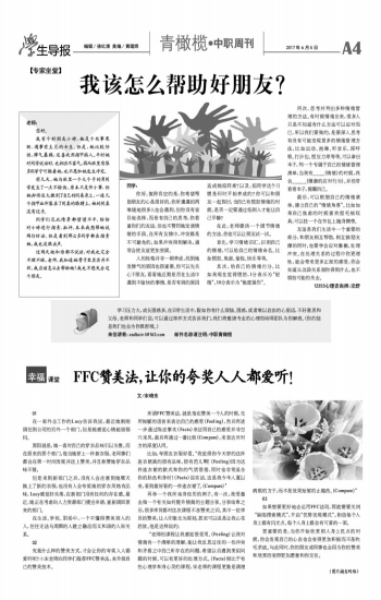 01 在一家外企工作的Lucy告诉我说,最近她刚刚调任到公司的另外一个部门,但是她感觉心情超级郁闷。 原因就是,她一直对自己的穿衣品味引以为傲。而在原来的那个部门,每当她穿上一件新衣服,老同事们都会在第一时间发现并送上赞美,并且称赞她穿衣品味不错。 但是来到新部门之后,没有人会注意到她哪天换上了新的衣服,也没有人会夸奖她的穿衣风格有品味,Lucy感觉好失落,在新部门没有任何的存在感。最近,她正在考虑向人力资源部门提出申请,重新调回原来的部门。 在生活、学校、职场中,一个不懂得赞美别人的人,往往无法与周围的人建立融洽而又和谐的人际关系。 02 究竟什么样的赞美方式,才会让你的夸奖人人都爱听呢?小宋老师向同学们推荐FFC赞美法,来升级自己的赞美技术。 所谓FFC赞美法,就是指在赞美一个人的时候,先用细腻的语言来表达自己的感受(Feeling),然后再进一步通过陈述事实(Facts)来证明自己的感受并非空穴来风,最后再通过一番比较(Compare),来表达对对方的深度认同。 比如,夸朋友衣服好看。“我觉得你今天穿的这件连衣裙真的很有品味、很有范儿啊!(Feeling)因为这件连衣裙的款式和你的气质很搭,同时也非常适合你的肤色和身材!(Facts)说实话,这是我今年入夏以来,看到最好看的一件连衣裙了。(Compare)” 再举一个我所亲身经历的例子。有一次,我受邀去做一个有关如何提升情商的主题分享。分享结束之后,很多学员都对这次课程不吝赞美之词。其中一位学员的赞美,让人印象尤为深刻,甚至可以说是让我心花怒放。他是这样说的: “老师的课程让我感觉很受用。(Feeling)让我对情商有一个清晰的理解,能让我反思过往的一些冲突和矛盾之中自己所存在的问题,希望以后遇到类似问题的时候,可以有更好的处理方式。(Facts)相比于有些心理学和身心灵的课程,宋老师的课程更像是调理病根的方子,而不是效果短暂的止痛药。(Compare)” 03 如果想要更好地去运用FFC法则,那就需要关闭“缺陷搜索模式”,开启“优势发现模式”。相信每个人身上都有闪光点、每个人身上都会有可爱的一面。 更重要的是,当你开始欣赏别人身上优点的时候,你会发现自己的心态也会变得更加积极而不是吹毛求疵。与此同时,你的朋友或同事也会因为你的赞美和欣赏而变得更加愿意和你交往。