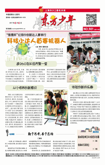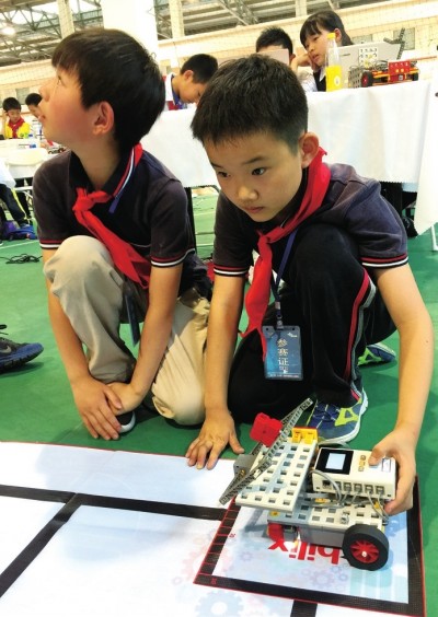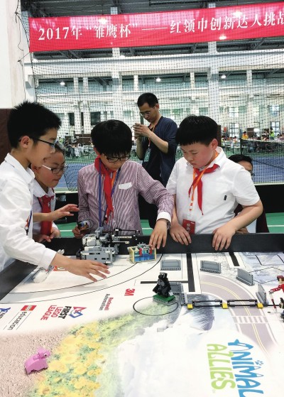 日前,在2017年上海科技节开幕之际,作为科技节期间的一项青少年科技活动,“雏鹰杯”红领巾创新达人挑战赛在上海理工大学举行,1500余名少先队员在这场科技嘉年华中放飞创新创造的梦想。 逾260支队伍齐聚一堂 该赛事由团市委、市教委、市科委、市少工委、上海理工大学、市红领巾理事会主办。相较2016年聚焦“科技小发明”,今年的创新达人挑战赛选择了在中小学生中更加流行的机器人项目,参与学校和人数显著增加,决赛参赛队伍超过260支。 在上海理工大学的体育馆里。记者看到,小朋友们被分成两个赛区——一组在进行WER积木机器人赛,一组在进行FIRST工程挑战赛(简称FLL)。每支参赛队由2-4名队员组成,大家正在共同协作对机器人进行设计、搭建、编程,并完成任务。最终根据任务完成的情况确定成绩。 从小培养创新意识 据悉,主办方设置这次比赛的目的之一是引导少先队员学科学、爱科学,养成创新意识。今年上海科技节的主题是“万众创新——向建设具有全球影响力的科技创新中心进军”。上海少先队开展“红领巾小创客”活动,是希望依托多种生动有趣的载体,积极引导少先队员探究生活中的科学,主动发现问题、深入思考问题,并通过科学、创新的方法解决问题,成为勤动脑、勤动手、爱科学、爱创造的好少年,为上海建设具有全球影响力的科技创新中心做好全面准备。 第二个目的则是提升少先队员综合性科学素养。机器人项目融合了数学、物理、机械、电子、电脑编程等多学科知识,可以有效锻炼学生的科技素养。WER项目和FLL项目都设置现场任务,需要学生现场分析、构思创意、编程调试、挑战难关,过程富有挑战性。同时,机器人比赛强调团队合作,充分锻炼少先队员的领导能力和协作意识,有助于集体主义精神的培养。 体验创新的乐趣 据比赛主办方介绍,机器人竞赛是培养学生创造能力、分析能力和实践能力的平台,希望同学们在趣味盎然的环境中通力协作、完成挑战,体验到创新的乐趣。 WER积木机器人赛的竞赛主题是“工业时代”。参赛团队需要完成获取能量块、建造桥梁、修理电风扇、开采铁矿等4个预设任务,还需要设计程序及结构完成现场命题任务,在真实的模拟中体验工业革命为人类社会带来的蓬勃发展。 FIRST工程挑战赛的竞赛主题为“动物之友”。参赛队需完成运送鲨鱼、喂食、导盲犬、养蜂挤奶等抽签任务,通过模拟人类与动物的日常交流,在解决实际问题的过程中传递保护动物和热爱自然的理念。