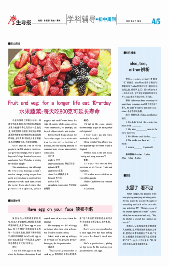 Fruit and veg:for a longer life eat 10-a-day 水果蔬菜:每天吃800克可延长寿命