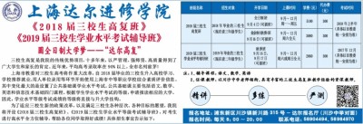 《2018届三校生高复班》《2019届三校生学业水平考试辅导班》 圆全日制大学梦——“达尔高复” 三校生高复是我院的传统优势项目,十多年来,以严管理、强师资、高质量得到了广大学生和家长的肯定。近年来,平均高考录取率在90%以上,全市名列前茅! 上海市教委对三校生高考将作重大改革,自2018届毕业的三校生升入高校学习、学校推荐就业、用人单位录用等环节开始使用上海市中等职业学校综合素质评价信息。其中变化最大的是设置了公共基础课学业水平考试。公共基础课主要包括语文、数学、英语和信息技术基础四门课程。根据学生学业水平考试的等级,申请报读相应的大学。因此,学业水平等级考试成绩的等级将直接与升大学挂钩。 为了适应三校生新的政策改革,以及满足三校生各种层次、各种目标的愿望,我院将开设《2018届三校生高复班》、《2019届三校生学业水平等级考试辅导班》,对考生进行高水平全方位辅导,帮助各位同学取得好成绩!具体招生事宜告示如下: 注:1、辅导课程:语文、数学、英语 2、任课教师:以川沙中学老师领衔,具有丰富的三校生高复班教学经验的资深教师。 报名地址:浦东新区川沙镇新川路315号-达尔报名厅(川沙中学对面) 报名时间:每天8:00~20:00 联系电话:58904494、58984970