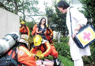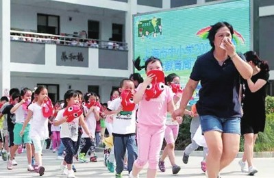 烟雾渐起,火灾逃生警报拉响。三分钟内,全校千余名师生捂着口鼻,沿着逃生路线汇集到操场集结。一名老师被困二楼,消防员紧急赶到,通过云梯将老师安全解救。此时,又有“房门”起火,师生拿起投掷式灭火弹砸向火门,火即刻被扑灭…… 9月4日,随着这场“消防安全第一课”在求知小学举行,徐汇区中小学2017学年“安全教育周”活动也就此启动。参加活动的学生表示,每次参加安全演练活动,都能学到新的安全知识和技能。今后,不论在学校、在家里或在公共场所,自己都要遵守安全规范,用学到的安全知识和技能保护自己,争做安全小卫士。