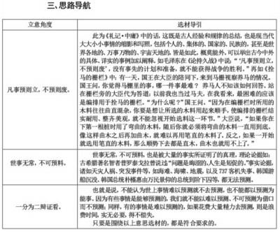 一、考卷真题 预测,是指预先推测。生活充满变数,有的人乐于接受对生活的预测,有的人则不以为然。 请写一篇文章。谈谈你的思考。(70分) 要求:1.自拟题目;2.不少于800字。 二、真题解读 (一)命题特点 上海2017年秋考作文题,延续和传承了上海多年以来的一贯风格和独有的海派特点,第一,从作文属性上是材料作文,可以最大限度地规避宿构、押题、猜题和套题的弊端与问题,能够考查出考生应有的、真实的写作能力和水平。 第二,试题语言的表述具有语言简洁明了,呈现出信息含量、思维含量丰厚的特点,其好处是:考生读起来省力、省时;不会造成理解上的偏差与歧义;给考生以气定神闲的感觉——如果是晦涩深奥或冗长繁多的文字,不免令人心浮气躁。 第三,今年的文题与2015年的“坚硬与柔软”、2014年的“自由与不自由”等之前的上海高考作文题一脉相承,都充满着辩证、对立又统一的关系。 (二)文题解析 可以说,文题字数不多、言简意赅的材料作文,每个字词、每句话都值得品味和咀嚼,只有这样,才可能吃透文字背后所蕴含的内涵与外延。今年的文题即属于这样的情况。现针对所给材料“预测,是指预先推测。生活充满变数,有的人乐于接受对生活的预测,有的人则不以为然”进行简析: “预测,是指预先推测”,对概念进行解释,便于考生理解其含义,非常直白、通俗。对理解后面的话,具有基础性作用。 “生活充满变数”,就是说,生活是变化的、发展的、动态的、不确定的,而非固定的、一成不变的、难以预料的。 “有的人乐于接受对生活的预测,有的人则不以为然”,例举了两类人对预测的不同态度和观点,孰是孰非,孰优孰劣,每个考生有各自的见解与主张,只要言之有据,能够以理服人即可。 (三)立意角度 第一,预测有理。即可以赞同对生活的预测,据此,可以用一些典型、鲜活的实例和理论论据加以论证。第二,反对预测。就是说,与其预测,不如脚踏实地地去好好生活,活在当下,活出生命的精彩。第三,对立统一。接受预测和拒绝预测是相对的,对立统一的。