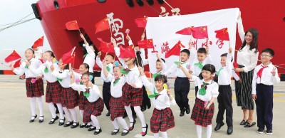 日前,第八次赴北极考察的中国极地考察团胜利归来。金洲小学的少先队员、儿童团员30余人,在老师的带领下,来到位于浦东新区的中国极地考察国内基地码头,欢迎科考队员们凯旋。 孩子们来到基地码头,抑制不住兴奋的心情,期盼着能早点看到归来的极地科考队叔叔阿姨们。9点45分了,只见极地科考队员有的身着鲜红的队服,有的身穿白色制服,排着队从雪龙号船上走下来了,孩子们见到叔叔阿姨,都激动不已,挥动着小国旗欢呼:“欢迎!欢迎!”十点钟到了,欢迎仪式正式开始,有领导致欢迎词,有极地科考队代表汇报北极考察的过程及取得的成果,孩子们听得是那么认真、专注,被极地科考队员们不畏困难、不怕艰险的精神深深感动着…… 欢迎仪式结束了,而对着媒体记者的采访,孩子们纷纷表达出自己的心声:有的说,能参加这样的欢迎仪式,真是光荣与幸运;有的说,要学习极地科考队员们为祖国科学事业拼搏的精神,从小要立大志,要发奋学习;也有的说,长大了也要当一名科考队员…… 极地中心的叔叔阿姨,还带领金洲小学的学生登上雪龙号,参观了驾驶舱、食堂、宿舍;还登上了甲板眺望海面;孩子们还和极地科考队全体成员合影,留下了难忘、宝贵、美好的瞬间。