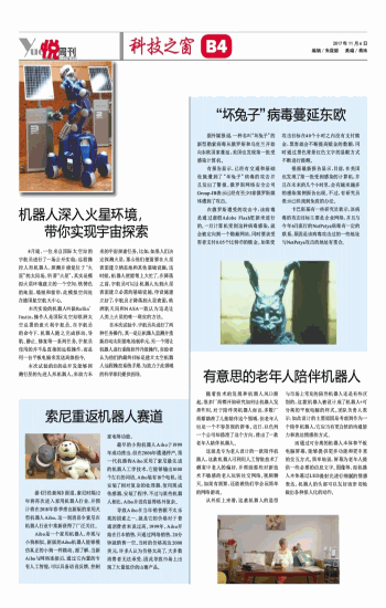 随着技术的发展和机器人风口渐起,很多厂商都开始研究如何让机器人发挥作用。对于陪伴类机器人而言,多数厂商都瞄准了儿童陪伴这个领域,但老年人也是一个不容忽视的群体。近日,以色列一个公司却瞄准了这个方向,推出了一款老年人陪伴机器人。 这就是专为老人设计的一款陪伴机器人,这款机器人可利用人工智能技术了解家中老人的偏好,并帮助那些对新技术不敏感的老人玩转社交网络、视频聊天。如果有需要,还能教他们学会玩简单的网络游戏。 从外观上来看,这款机器人的造型与市场上常见的陪伴机器人还是有些区别的,这款机器人被设计成了机器人+可分离的平板电脑的样式。团队负责人表示:如此设计的主要原因是考虑到作为一个陪伴机器人,它应当有更自然的沟通能力和表达情感的方式。 而通过可分离的机器人本体和平板电脑屏幕,能够提供更多功能和更丰富的交互方式。简单地说,屏幕为老年人提供一些必要的信息文字、图像等,而机器人本体通过LED漫射光进行细腻的情感表达,机器人的头部可以友好而亲切地做出各种拟人化的动作。