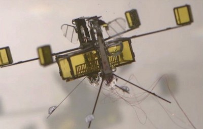 来自哈佛大学的蜜蜂机器人在2013年首次亮相,它当时只能实现飞行、着陆这两项任务,并没有具备其他额外功能。近日,有外媒消息透露,这个蜜蜂机器人取得了一项突破。它不仅能够完成基本的飞行、着陆,还能够潜水、游泳。当它自如地破水而出之后,它会飞进一个方形的中央气体收集室随后再飞到空中。 这个蜜蜂机器人重量约为175毫克,而液体表面的张力是机器人重量的10倍以上,为其最大升力的3倍。之前的研究证明了撞击和锋利的边缘如何打破水的表面张力来促进机器人潜入水里,但问题仍然存在,它如何再次从水里返回到空中? 为了解决这个问题,研究人员对蜜蜂机器人进行了改造,其中有四个漂浮的外物——主要是机械浮力和一个中央气体收集室。一旦蜜蜂机器人游走到表面,室内的电解板便会将水转化为氧气,这是一种可燃气体燃料。 据了解,这种气体增加了机器人的浮力,将翅膀从水中推出并漂浮在水面上,这能够使得蜜蜂机器人保持稳定。从那里,一个小小的火花在中央气体收集室里点燃了气体,把蜜蜂机器人从水里推了出来。机器人的设计是被动地稳定在空气中,这样它才能始终保持着地。从水中射出后,蜜蜂机器人的“翅膀”可以控制自身的运动轨迹,之后安全着陆在茶杯附近或者其他地方。 不过由于重新设计的蜜蜂机器人尺寸有限,没有多余的空间安装复杂的传感器或其他指令系统,所以尽管它可以飞,也能在水面行走自如并自行破水而出,但是目前还不能被我们远程控制,而且也不能像真正的蜜蜂那样执行一些有意义的任务,比如给农作物授粉。