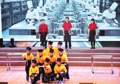 “阳光沐浴,亲水滋润,蓝天下找到人生的路标……”伴随着上海市贸易学校党委书记苏健忠填词谱曲的《阳光前程》响起,该校2017年校园文化艺术节在上海东方艺术中心落下帷幕。 历时4个多月,演职人员超过400人,贸易学校师生共同见证了这台艺术节活动的诞生,向观众展示了该校师生充满阳光朝气、奋发向上的精神风貌。 记者 徐红清 师生共献才艺展情谊 动感十足的键盘舞《敲击梦想》,融合了书法、茶艺、武术表演的音诗画《风•雅•赋》,电脑打印的京剧脸谱,把国粹和信息技术结合起来,身着“一带一路”沿线国家特色服装走商贸之路……艺术节舞台上,不仅有来自学校各个社团同学的精彩表演,计算机、食品、英语等专业的同学们也以充满创意的形式,向观众呈现精彩的T台秀《真我风采》,赢得观众阵阵掌声。 艺术节不仅展现了学生的自我成长,而且通过小品、故事讲述等呈现该校师德大爱。小品《烛光里的妈妈》定格师生情谊,讲述了像妈妈一样倾情呵护学生的班主任的感人故事;歌舞《我知道》的主唱陈世芬老师,则在罹患甲状腺癌,术后没多久主动要求回归班主任岗位,“班主任工作挺累,但很充实、很快乐。”陈老师朴实的话道出一份浓浓的师生情。 本次校园文化艺术节的总导演肖卫民介绍,围绕“阳光起航•铸就梦想”的主题,艺术节把该校的“阳光德育”理念贯穿始终,聚焦“工匠精神”,释放“梦想从这里起航”的愿景,为学生提供了展现才艺的舞台。 音乐短剧诠释“匠人匠心” 食品专业里被同学们誉为“天才”的张晓峰,却在“星光计划”选拔赛里只拿到五分,制作台上乱七八糟没整理干净,评委说:“应该给你零分的。”怀揣“我想成为一个出色的西点师”梦想的他,经历愤怒、失落后,在专业老师的鼓励下,寻找学习专业过程中的不足,重新踏上追寻梦想的征途。 音乐短剧《用心的味道》,再现该校食品专业学生在专业学习、技能比赛中不断成长的真实故事。“西点也是有生命的,用心对待每一个细节。”这句追寻“工匠精神”的感悟,引发台下观众的共鸣。 据了解,整台演出中的12个节目,都由该校师生自编自演,歌舞、朗诵、情景剧等,形式活泼多样,内容精彩纷呈。 >>>幕后花絮 用心对待每一个细节 台上故事精彩,幕后故事同样感人。 为了达到最好的舞台效果,台上的参演者随时面临“换角”,直到正式演出当天的中午,还有演员在被替换。最让肖老师感动的是所有师生的齐心协力,“从全程参与策划的校领导蒋波平,到普通学生,每一个参与者都把这件事当成‘自己的事儿’,没有一句怨言,只有全力配合。” 表演类的节目,对于没有表演经验的同学们来说,无疑是巨大挑战。担任《用心的味道》主演的金屹栋就是一个表演“零经验”的同学,“比如主角从嘚瑟,到失落、愤怒,再到反思,这一情绪变化的过程,要从脸部表情和语音语调中表现出来,很难。”反复琢磨人物情感,10遍、50遍、无数遍地练习,金屹栋的表演最终获得导演的认可,金同学说:“用心对待每一个细节,我对这句话有了更深的理解。” “为了做节目视频,赶了三个通宵,三天没回家。”正式演出前五天,赵俊杰和小伙伴们接到紧急任务,总导演对前期的视频制作不满意,需要重新制作。赵俊杰被安排做音诗画《风•雅•赋》的视频,“要能跟中国风的社团展示内容切合,又要体现出我们学校特色。”为此,赵俊杰动足脑筋,设计出水滴落到纸上,形成一圈圈水纹的视频小创意,呈现出完美的效果。“最大的感受是,大家在一起为同一个目标努力,无私奉献。”他说。 姜晓敏校长表示,12个原创节目背后都有故事,艺术节是学校很多社团和艺术活动的缩影,是学校“阳光德育”和教学工作的共同展示,真正体现出学校关注学生未来美好生活的教育理念。