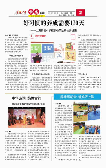 好习惯的养成需要170天——上海实验小学校长杨荣给家长开讲座