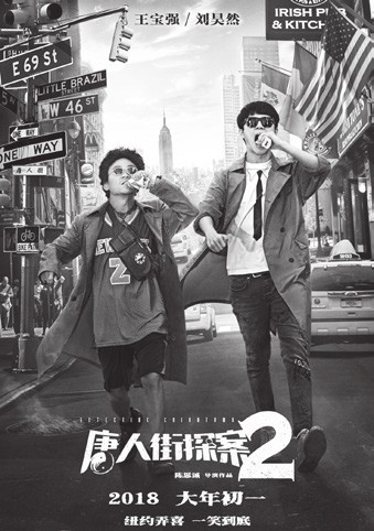 日前,喜剧探案系列电影《唐人街探案2》发布“闯纽约”版海报。由陈思诚编剧、执导,王宝强、刘昊然领衔主演的喜剧探案系列电影《唐人街探案2》将于2018年大年初一(2月16日)全国上映,“闯纽约”版海报上,王宝强和刘昊然这对唐人街神探组合勇闯纽约,两人和拥有神秘新身份的肖央,一起开启了充满欢笑的纽约探案之旅。 海报中,三人在时代广场驾马车狂奔、骑哈雷摩托驰骋,还在纽约街头啃煎饼吃泡面。身后是繁华的大都会,三人的表情或囧或萌,喜感满满。据了解,这次电影《唐人街探案2》来到纽约,深入时代广场、麦迪逊大道、中央车站、布鲁克林大桥等知名景点拍摄,尽显纽约魅力。导演陈思诚更表示:“这次来到宇宙中心,《唐探2》将彻底嗨翻纽约,相信会给观众带来一场视听盛宴。”