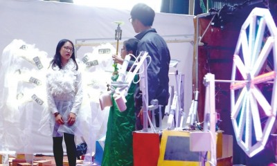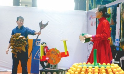 12月中上旬的两个周末,第十二届DI创新思维中国区总决赛(以下简称DI)在廊坊顺利举行。其中,初中组、高中组、大学组三个组别的决赛于12月2日和3日进行。经过精彩的角逐,向明中学、华东师范大学附属第一中学获得即时挑战第一名,华东师范大学附属第一中学、大同中学、卢湾高级中学、向明中学获得各挑战高中组一等奖。 记者 徐红清 摄影 常鑫 创新混搭传统 中国故事成亮点 竹刻、手工编织等中国非遗技艺,古筝、扬琴等中国乐器,上海小笼、京剧脸谱、舞狮……DI现场,不少参赛队在主题、道具等方面融入了更多中国文化元素,向世界讲述中国故事。 获得挑战C“变调的音乐”高中组一等奖第一名的上海市大同中学,选择了“中西音乐融合”这一主题。队长侯吟丞曾对确定主题很“头疼”,队员们的思维从人工智能发散到战争与和平。最终,大家决定以乐器为呈现形式,表演中既有扬琴、古筝等民族乐器,也有钢琴、吉他等西方乐器,“音乐作为世界交流语言,是可以取长补短,相互融合的,也是希望以此向更多人展示中国的优秀传统文化。”侯同学表示。 无独有偶,嘉定区第一中学在挑战A“走出迷宫”中,选择了“中国技艺”这一主题,主人公在计划移民的过程中,接触了中国各种手工技艺,感受到中华文化的博大精深,自豪感油然而生,改变了移民的决定。队长程浩然告诉记者,在嘉定,有竹刻这类非遗项目,学校里也有从非遗“草编”中延伸出来的手工艺编制社团,“我们在高一做过相关课题,感觉现在传统手工艺人越来越稀缺。”耳濡目染之下,激发了他和队员的灵感,一番商量,他们最终选择了这一主题。 意外频发 各展所长从容应对 道具搬运中被损坏,及时修补;队员在训练中出了状况,大家协作调整分工……赛场内外,同学们随时处理着各种突发状况。 获得挑战B“意想不到的吸引力”高中组一等奖第一名的上海市向明中学,在赛场上经历了“惊心动魄”的过程,队员们随机应变机智化解。早上九点他们来到赛场熟悉场地,发现赛场地面有根凸起的电线,“我们的背景墙底座是贴地的,包括F1赛车模型发动后穿越墙体的剧情,都因此受限。” 此时距离他们参加即时挑战只有一个多小时,是先调整道具还是先准备即时挑战赛,队长楼立颖果断决定先调整道具。重新打孔,调整背景墙底座的木板高度;制作两块小木条,用作凸起电线的小斜坡……快速完成道具改造后,大家立马冲向即时挑战赛场,即时挑战结束后,距离他们参加挑战B项目只有20分钟了,调整心态,队员们又走进赛场。 楼立颖作为主演之一,在场上再次遭遇“意外”。场地上凸起的电线,震落了她驾驶的F1模型赛车链条,车停了。“在赛场上,为了保证剧情流畅,我是无法修理车子的。”楼立颖心里有些小慌张,临时调整了台词的顺序,乘这个空当,一个队员灵活地冲到车前修理,车子再次启动。尽管充满各种意外,但楼立颖却感到“玩得很开心,过程是最大的享受”。 北虹高级中学的郁积尧同学在赛前突然韧带撕裂,拄着双拐依旧要来参加比赛。小伙伴们二话没说,第一时间调整分工。把沙盘制作不需要走路的工作交给了他,“这样的经历很难得,不想放弃。” 学以致用 乐趣和成长一个都不能少 抗挫折的心理承受能力、时间管理、性格各异的队员彼此磨合完成同一个目标……在发挥创意想象的背后,DI带给学生的收获和成长是全方位的。 格致中学的章旭承已第三次参加DI了,他发现,“在设计道具的时候,用到的很多知识都是课堂学到过的。比如电路、机械传动这些。”他所在参赛队设计的“没有应用于得分项”中的道具,外表精致,可以完成点头、摆手、敲击等各种动作的小机器人,吸引了评委的注意。问及为何没有把这一道具纳入得分项,章旭承觉得,学以致用本身就是一件充满乐趣的事情,“享受过程最重要。” 在DI现场,记者看到不仅有很多第一次与DI的“牵手”的同学;更有不少是参加DI三四年的“老队员”,他们从队员成长为队长,甚至担任着“副领队”的角色。“感觉身上的担子重了很多。”华东师范大学第一附属中学高二年级的陶文豪告诉记者,去年他所在的队伍参加挑战A,在全球赛拿到了第八名的成绩,“有些小遗憾,今年再次参加,是圆梦,也是为了更快地成长。”他选择了极富挑战的项目D即兴表演,担任队长。 团体挑战结束时,队员们都觉得不够理想,有些沮丧。如何让队员们重拾自信,保持状态应对接下来的即时挑战?陶文豪给队员们分析自己队伍的优势,他又跟队员们分析即时挑战的赛题、材料……从容的态度、有条理的分析,让队员们逐渐平静下来,全情投入接下来的赛题准备中。功夫不负有心人,陶文豪所在的MISS.BANANA队获得了挑战D即兴表演一等奖和即时挑战第一名的“双料冠军”。