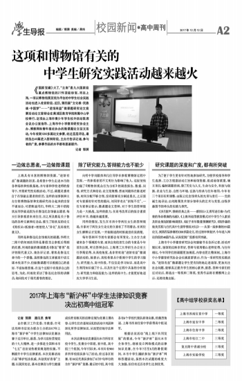 2017年上海市“新沪杯”中学生法律知识竞赛决出初高中组冠军
