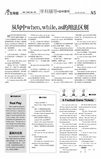 【注】as 用于引出一个持续性动词表示“在……期间”时,其谓语通常只能是那些含有动作(action)和发展(development) 意味的动词,一般不能是那些不用于进行时态的动词(如 be, seem, love, want, agree, see, know, have 等),所以下面一句中的 while 不能换为 as: