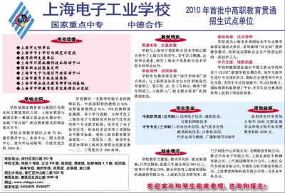 国家重点中专 中德合作 2010年首批中高职教育贯通招生试点单位 学校荣誉 ◆上海市文明单位 ◆上海市中小学行为规范示范校 ◆教育科研先进单位 ◆上海市计算机操作技术培训中心 ◆国家职业技能鉴定所 ◆上海市电子与通信开放实训中心 ◆上海市教育系统先进集体 ◆上海市职业技术教育师资培训基地 ◆上海市中职教育改革发展特色示范校 学校介绍 学校是国家教育部与德国巴伐利亚州文教部签约立项、上海市教委与德国汉斯·赛德尔基金会长期合作、实践“双元制”职业教育模式的国家重点中专。 学校总部教学园区占地75亩,建有教学中心、实训中心、图文信息中心、室内外运动场等,目前在校生约1600名。 学校拥有一支教学经验丰富的教师队伍。中高级职称的教师占93%,双师素质教师占81%,70%的教师曾赴德国、芬兰学习进修,主持开发了上海市电子与通信技术和电气技术应用两个专业教学标准,还开发了电子技术应用、机电技术应用等5项国际水平教学标准,荣获上海市教育教学成果奖一、二等奖各1项,指导学生荣获全国和上海市各项职业技能竞赛一、二、三等奖共计200余项。 教学特色 贯通体系 生涯发展 学校与上海电子信息职业技术学院已联合招生了七届五年制学生,学生学习期满,达到毕业要求,颁发上海电子信息职业技术学院专科毕业证书。 学徒培养 合同保障 学校作为教育部首批“现代学徒制”试点单位,与上海两家知名企业合作招收现代学徒制工,签订校、企、生三方协议,确保“招生即招工、入校即入厂、校企联合培养”机制落到实处。 国际标准 试点培养 学校成为上海市首批国际水平专业教学标准实施试点单位,采用德国“双元制”教育教学模式,培养适应国际企业生产经营运作的一流技术工人。 中外交流 视野拓展 学校和德国普法基尔辛国立职业学校和芬兰CHINET联盟学校长期合作,每年互派学生进行专业项目学习、国际企业感受和中外文化交流,为学生专业技能提升、学习自信确立、国际视野拓展搭建了平台,在学生综合素质的培养上起到了明显的效果。 招生专业 中高职贯通(五年制):应用电子技术、通信技术、计算机网络技术 中专专业(三年制):机电技术应用、电气技术应用、模具制造技术、计算机应用、汽车运用与维修、广播影视节目制作 资助政策 农村学生可享受每人每年2000元国家助学金和每人每年免学费教育补助4600元。 就业情况 学校教学力量强,教风学风好,就业渠道畅,升学比例高,连续几年就业率达98%以上;高考升学率达95%。就业单位有上海浦东国际机场股份有限公司、上海航天技术研究所、西门子制造中心有限公司、宝钢股份有限公司、联合汽车电子有限公司、上海克虏伯不锈钢有限公司、上汽集团乘用车分公司、上海汇众汽车制造有限公司、中国东方航空股份有限公司、上海摩意网络科技有限公司等一百多家中外企业。 学校地址:闵行区剑川路910号 学校交通:地铁5号线、公交816路、徐闵线、莘团线、虹桥枢纽4、5路、松闵线、莘南专线、南闵专线、闵吴线、庄莘线、南江线 招生办地址:徐汇区中山南二路620号 奉贤总校:奉贤区瓦洪公路3098号 网址:www.shdzgyxx.com 联系电话:64184676、64184677