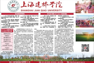 珠宝学院获奖情况 1、2017年第五届中国(深圳)国际珠宝首饰设计大赛二等奖一项、三等奖一项 2、2016年第一届中国·顺德珠宝首饰创意设计大赛(创意组3D类别)创意金像奖一项 3、2017年国际时尚翡翠首饰设计大赛入围奖一项 4、 2016年首届“玉瑶奖”首饰设计大赛新秀奖二项、入围奖四项 5、2017年第六届“天使之泪”首饰设计大赛一等奖一项 6、 2016年第三届紫金奖·现代手工艺创新设计大赛优秀奖三项 7、2016年上海新锐首饰设计大赛二等奖一项 8、2017年第9届上海玉龙奖银奖三项、铜奖六项、最佳创意奖六项、最佳工艺奖一项、优秀奖四十六项 艺术设计学院2015-2017年获奖情况 1、第十五届上海国际大学生广告节个人奖三项 2、第八届全国三维数字化创新设计大赛全国三等奖一项、上海市二等奖三项。 3、中国包装创意大赛一等奖一项、二等奖两项、三等奖十二项。 4、全国大学生广告艺术大赛一等奖一项、二等奖两项、三等奖两项、优秀奖九项。 5、全国数字艺术设计大赛优秀奖两项。 6、全国大学生艺术展演一等奖四项、二等奖八项。 7、全筑杯上海市大学生创意设计大赛个人奖两项。 8、“汇创青春”上海大学生文化创意作品展一等奖四项、二等奖十二项、三等奖二十一项。 上海建桥学院创办于2000年4月,是一所以应用型本科教育为主,培养生产、管理、服务第一线应用型人才的多科性民办大学。 学校是上海市首批自主招生改革试点单位、首批校企合作培养高技能人才试点单位,是上海市高校辅导员培训基地、上海市高校首批创业指导基地和浦东新区高技能人才培养(实训)基地。学校已拥有国家级特色建设专业1个、国家级精品课程1门、教育部本科专业综合改革试点1个、上海市优质在线课程2门、上海市应用型本科试点专业4个、上海市精品课程11门、重点课程53门、教育高地(特色专业建设)3个、教学团队1个、上海市本科重点教学改革项目11项,上海市中本贯通专业2个、上海市级教学成果奖5项。学校是全国文明单位、上海市文明单位、上海市花园单位、上海市平安校园、全国民办高校创新创业教育示范校。 学校总投资已逾26亿元人民币,校园占地面积800亩,已建成建筑面积约38万平方米,教学科研仪器设备总值达1.6亿元人民币,多媒体教室和语音实验室座位总数18448个;学校建有9个二级实验中心,2个公共实践教学资源共享基地,各类实验室147个。图书馆馆藏纸质图书140余万册,阅览学习环境优雅。 学校设有商学院、机电学院、新闻传播学院、艺术设计学院、信息技术学院、外国语学院、珠宝学院、国际设计学院等10个二级学院,开设专业42个,其中本科专业30个。覆盖经、管、文、工、艺等多个学科门类。学校全日制在校生有16670人,其中本科生14061人。创办以来,学校已为社会输送15届逾四万名合格毕业生,近年来就业率稳定在98%以上。 学校折合教师914人,专任教师中副高以上职称者占比40%,研究生学位占比70%,9人获享国务院政府特殊津贴,3人获“宝钢教育基金”优秀教师奖,有全国优秀教师、全国高校优秀辅导员1人,上海市模范教师1人,上海市育才奖获得者19人,“晨光计划”项目获得者17人。 学校先后与百余家企业建立了合作关系,实现校企合作培养人才。与美国、德国、英国、法国、丹麦、澳大利亚、韩国、日本等国以及台湾地区多所高校签订合作办学协议,实施以“课程对接、师资共享、学分互认、学生互换”为基础的国际化教育。与东华大学、上海海洋大学、江西财经大学开展联合培养专业硕士研究生合作,稳步推进专业学位硕士点内涵建设。学校加入上海市西南片高校联合办学,参与上海高校课程资源共享中心建设等,在校本科生可共享跨校教育资源。学校还是全国应用技术大学(学院)联盟、非营利性民办高校联盟成员单位。 (注:数据截至2017年12月) 2018年上海建桥学院艺术类在沪招生专业 视觉传达设计 环境设计 数字媒体艺术 数字媒体艺术(动漫设计方向) 产品设计(文化创意产品方向) 产品设计(珠宝首饰设计方向) 招生专业及计划数以《2018年上海市普通高校招生专业目录》公布为准 校址:上海市浦东新区沪城环路1111号 电话:021-68130020、68130021、58137880 网址:http://www.gench.edu.cn