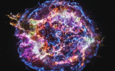 如果要问地球上生命最基本的元素来自哪里?答案应该是在恒星的熔炉里,以及那些标志着一些恒星生命终结的爆炸。长期以来,天文学家们一直在研究爆炸的恒星及其残骸,即“超新星遗迹”,以便更好地了解恒星是如何产生的。 由于其独特的进化地位,科学家们对“仙后座A”超新星残骸进行了最深入的研究。 NASA日前公布的钱德拉X射线天文台的新图像,就显示了“仙后座A”爆炸残骸中不同元素的位置:硅(红色)、硫(黄色)、钙(绿色)和铁(紫色)。每一个元素都能在狭窄的能量范围内产生X射线,这样就能绘制出它们所在位置的地图。而爆炸的冲击波被看作蓝色的外圈。 据悉,自从1999年望远镜发射升空以来,钱德拉就多次观测“仙后座A”。不同的数据集揭示了“仙后座 A”中中子星的新信息,爆炸的细节,以及碎片如何被喷射到太空的细节。