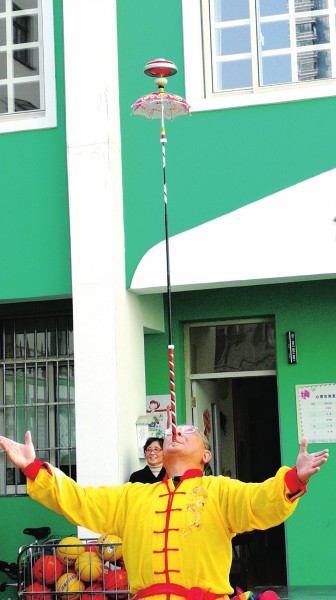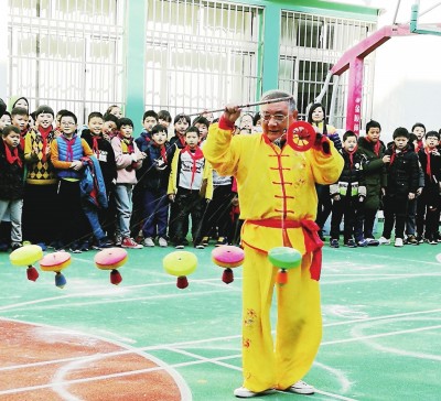 传统体育魅力足 退休教师演空竹