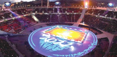 2月25日,第二十三届冬季奥林匹克运动会闭幕式在韩国平昌奥林匹克体育场举行。中国短道速滑选手武大靖高举五星红旗引领代表团入场。在韩国流行文化的展示环节之后,北京市市长陈吉宁从国际奥委会主席巴赫手中接过奥运五环旗,冬奥会正式进入北京时间。“北京8分钟”成为闭幕式一个高潮,在两名熊猫信使的带领下,22名轮滑少年和24面冰屏机器人滑入会场,进行了融汇科技和艺术的表演,并带来了中国人民向世界发出的诚挚邀请。