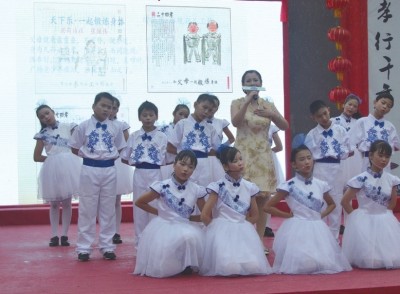 一方水土养一方人,徜徉于江南水乡韵味的兴塔中学尤其雅致诗意。尤其生动的一抹韵律来自每日的清晨学生们的诵读吟唱。雅致、诗意的兴塔中学让全国各地来的少年在学习、吟唱。在行走在诗与远方的美好意境里,孩子们更加自信、儒雅、阳光。 作为一所典型的农村初级中学,学生主要来自辖区农家和来沪务工子女家庭,让这些孩子拥有开朗、自信的性格成为学校教育首先需要解决的难题。学校以古体诗词创作和吟诵课程教学为切入口,以《古诗词吟诵》、《弟子规》、《为你读诗》课程为切入点,让极富文化韵味和节奏韵律的古诗成为传承中华先贤自信与风骨、浪漫与情怀的钥匙,为学生插上想象与创造的双翼。 经典诵读让自信的声音嘹亮着弥漫校园。每天早上10分钟的“为你读诗”微课程和5分钟的《弟子规》诵读,让无声的文字和有声的诵读交相辉映;不定期的专家诗歌知识讲座、优秀诗词作品鉴赏,让学生在读诗、吟诗的过程中融入自我,感悟先贤借物咏志的睿智;经典诗词吟诵比赛让学生在与诗人的时空对话中感受中华智慧,将优秀传统文化内化为自己对世界的认知和判断。读来朗朗上口,品来意犹未尽的诗词,凝练着先贤智慧,也承载着兴塔中学塑造自信学生的殷切希望。 依托《古诗词创作》校本课程开展的古诗词创作教学激发了学生的探索意识。系统教授“平仄、押韵”的章法、“起承转合”的结构、词牌曲调的节奏……于是,创作便成为课程的主要内容。学校诗词社团“兴荷诗社”累计社员超过1000人,在校学生古体诗词吟诵、创作普及率100%,先后出版诗词作品《兴荷集》3辑,原创诗词发表50余篇。走出教室、走进生活,观察自然、观察社会的过程引导学生主动探究未知世界,并将浪漫的想象与创新精神相融相生。 诗教与多学科融合让学生风采尽显。书法课,学生临摹中华经典诗句或自己创作诗词作品,感受传统文化融合的独特魅力;校园艺术节、读书节,学生吟诵自己的原创作品,体验成功与快乐;美术课,绘画作品与诗歌创作闪烁想象的光辉,让“诗情画意”成为学校最美的人文风景。学生原创诗词改编的音乐剧和校园歌曲,将优雅精致的文字演绎成富有表现力和感染力的艺术作品,音乐剧《新二十四孝》《诗情画意》《春夏秋冬》和原创校园歌曲《咏叹四季歌》等作品先后获得多项国家及市级荣誉。多学科融合让诗教育人的目标有了丰富表现,学生写自己的诗、画自己的诗、唱自己的诗、演自己的诗,不同的舞台尽显了属于自己的风采。 校园诗意、人文的环境,让学校在中华优秀传统文化的浸润中提升内涵。诗教育人,育德无形的注脚。