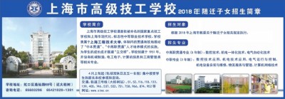 学校简介 上海市高级技工学校是首批被命名的国家重点技工学校和上海市现代化、标志性中等职业技术学校。学校隶属于上海工程技术大学,体制内的贯通有效地推动了“中本贯通”、“中高职贯通”人才培养模式的实施,为学生的成长成才搭建“立交桥”。学校创建于1951年,开设有机械制造、电工电子、计算机信息和工商管理类等相关专业。 招生对象 根据2018年上海市教委关于随迁子女相关规定执行。 招生专业 中高职贯通专业(5年制):数控技术、机电一体化技术、电气自动化技术 中职专业(3年制):数控技术应用、机电技术应用、电气运行与控制、机电设备安装与维修、物流服务与管理、计算机网络技术 4月上旬起(包括双休日及五一长假)集中接受学生和家长来校参观和咨询。 交通:轨道三号线(大柏树站)、51、52、116、118、133、139、405、746、537、552、751、758、966、874、952等 网址:www.simc.cn