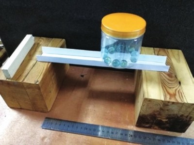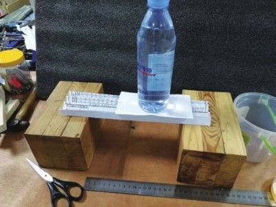 ◎编者按:DI(Destination Imagination),中文翻译为“目的地想象力”,是一项旨在培养青少年实际创新能力的国际性教育项目,其寓意无限的想象力和创造力,关注于对青少年——包括从幼儿园到大学生创意思维、团队合作和问题解决等能力的培养。2013年,DI正式落户上海,全市中小学校(包括中职校)的学生通过参与活动,感受到DI的核心价值和魅力。为了让更多中职校学生走近、了解DI,《学生导报•中职周刊》与DI上海组委会开设“DI即时挑战”专栏,同学们可以通过图文和动手体验,发挥想象力,一路享受创意的过程。 薄薄一张A4纸只有几克,制作成的桥却能承重一瓶500ml的矿泉水!这是怎么做到的呢?这一次我们就来看看这张纸是怎么样一点点“蜕变”成坚硬的小桥。 我们只需要准备一张纸,另外还有两个木块作为桥墩。 首先我们给自己定一个小目标,在相距20cm的情况下,看看纸有多大的承重能力。 我们先看看一张纸在不经过任何处理的情况下,能承重多少呢? 显然这张纸非常的“软弱”,就连一个轻轻的塑料杯都支撑不住。怎样做可以让它变得坚硬呢?接下来就是见证“奇迹”一步步地出现。 我们尝试下将纸对折一次后,会不会增强它的“力量”。 从上面的照片中看出,对折一次后的纸似乎“强壮”了一些,能支撑住刚刚的塑料杯了,不过它距离我们的目标有很遥远的距离呢!但是这一次的对折给了我们很多的启发,是不是再多折叠几次就会让A4纸更加的“强壮”呢?我们来看看实验的情况: 在折叠2次之后,我们将纸折叠成一个“凹”字形,轻而易举地支撑起了一个空的杯子,我们在其中放上了5颗玻璃弹珠,似乎也是稳稳当当!看来,我们的设想是正确的! 接着我们继续折叠,将“凹”字形的左右两边分别向内折叠一次,变成下图的样子。 原来左右两侧竖直的边,被折成了两个三角形。之后再次进行承重。这一次,不仅承重了一个塑料饼干罐子,还有14颗弹珠。 有了这样的两次实验,忽然有了这样一个猜想,“折得越多,承重越强。”同时也产生了一个大胆的挑战,我们要承重一瓶装满的矿泉水!为此,我就用一张新的A4纸,折成了波浪状。 经过几次的尝试,我们的A4纸竟然成功地支撑起了一瓶装满的500ml矿泉水!仅仅简单几次的折叠,“柔弱”的A4纸就变得十分的“坚硬”。不过在这次的挑战中,矿泉水瓶放上去的过程跌跌撞撞,几次的尝试中只有一次将我们的矿泉水瓶放稳。该如何改进,才能让矿泉水瓶稳稳地站立在“纸桥”上呢? 我们先将A4纸沿着长边,剪成较宽和较窄的两个部分,将较宽的部分折成波浪形,将较窄的部分沿着长边对折。然后把波浪桥架在桥墩上,再将对折后的纸平铺在桥上做成桥面,再一次将矿泉水瓶放上纸桥,这一次的实验真是“十拿九稳”,每一次都是稳稳当当站立在桥上。 到这里,我们的实验也算大功告成。一张只有4.5克重的A4纸架设的桥梁,竟然承受住了500ml重的矿泉水瓶。同学们,如果是你们,会不会有更好的办法,让横跨20cm的桥梁再承受一瓶矿泉水的重量呢? 用2张A4纸在距离20cm的木块上架设纸桥,是否能承受2瓶矿泉水的重量?用2张A4纸在距离30cm的木块上架设纸桥,是否能承受1瓶矿泉水的重量? 欢迎同学们踊跃尝试,将你们的方案分享给我们,我们会将优秀的方法刊登。 投稿邮箱:dishtech@126.com