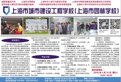 国家级重点中专 上海市文明单位 上海市中小学行为规范示范校 上海市中等职业教育改革发展特色示范学校 世界技能大赛花艺项目中国集训基地 中国传统插花民族文化传承教育基地 全国中小学中华优秀文化艺术传承学校 学校简介 上海市城市建设工程学校(上海市园林学校)是一所专门培养城市道路和桥梁、给水与排水、城市轨道交通、园林绿化等城市基础设施建设、运营、设施维护、质量检测和现场管理人才的全日制中等专业学校,隶属上海市住房和城乡建设管理委员会。学校是首批国家级重点中专学校、上海市文明单位、上海市中等职业教育改革发展特色示范学校、上海市中小学行为规范示范校、世界技能大赛花艺项目中国集训基地、上海市中等职业学校中国传统插花民族文化传承教育基地、全国中小学中华优秀文化艺术传承学校,多次荣获建设部职业教育先进集体、上海市职业教育先进单位、上海市安全文明校园等称号。在学校60多年的办学历史中,为行业和社会输送了大批城市建设中等专业技术技能人才。在行业内享有“城市建设者摇篮”的美誉。 学校专业特色鲜明、师资力量雄厚、校区环境优美、交通便捷、学生就业前景良好,深受用人单位好评。学校职业培训在业内享有良好口碑。学校师生在全国和上海市的职业技能大赛以及各级各类教科研评比中屡获佳绩。 专业介绍 一、中本贯通教育(学制:3+4年) 《风景园林》 (合作高校:上海应用技术大学) 二、中高职贯通教育(学制:3+2年) 1、《市政工程技术》 (合作高校:上海城建职业学院) 2、《园林技术》 (合作高校:上海城建职业学院) 3、《工程测量技术》 (合作高校:上海城建职业学院) 4、《建筑工程技术》 (合作高校:上海济光职业技术学院) 三、中等职业教育(学制:3年) 1、土木工程大类(包含5个专业) 《市政工程施工》 (上海市中等职业学校示范性品牌建设专业、享受专业奖励) 《给排水工程施工与运行》(上海市中等职业学校品牌建设专业、享受专业奖励) 《工程测量》 (国际水平专业教学标准试点专业、上海市中等职业学校品牌建设专业、享受专业奖励) 《土建工程检测》 (学校特色专业、享受专业奖励) 《建筑工程施工》 (享受专业奖励) 2、农林牧渔大类(包含3个专业) 《园林技术》 (上海市中等职业学校品牌建设专业、免费教育) 《园林绿化》(免费教育)《植物保护》 (免费教育) 3、《工程造价》 (学校特色专业) 4、《城市轨道交通运营管理》 (上海市中等职业学校品牌建设专业) 专业介绍可点击学校网站-专业建设栏目查阅。具体招生要求和计划,请根据考生的性质和准备报考的类别,详见上海市教育考试院编赠的《2018年上海市全日制普通中等职业学校自主招收进城务工人员随迁子女报考手册》、《2018年上海市中等职业学校提前批招生报考指南》和各区招生考试部门编赠的2018年各区中等学校高中阶段招生工作招生计划或报考指南。欢迎家长和考生来校来电咨询。 招生咨询日:2018年4月14日(周六)9:00~15:00 学校网址:http://www.chengxiao.sh.cn 学校地址:上海市徐汇区龙水北路999号 邮编:200232 招生咨询热线:64572540 64571626*2243 交通:轨交11号线至龙华站下;轨交3号线、轨交12号线至龙漕路站下。