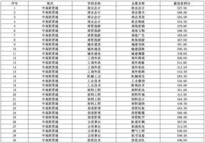 2017年中招中职校提前批中高职贯通各专业录取最低分数线参考