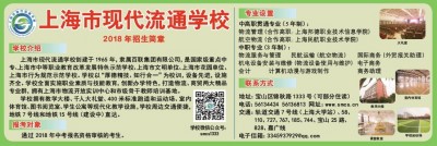 学校介绍 上海市现代流通学校创建于1965年,隶属百联集团有限公司,是国家级重点中专、上海市中等职业教育改革发展特色示范学校、上海市文明单位、上海市花园单位、上海市行为规范示范学校。学校以“厚德精技、知行合一”为校训,设备先进,设施齐全。学校全面实施职业素质与技能教育,创新办学特色,打造物流、商贸两大精品专业群,拥有上海市物流开放实训中心和市级骨干教师培训基地。 学校拥有教学大楼、千人大礼堂、400米标准跑道和运动场、室内体育馆、图书阅览室、学生公寓等现代化教学设施,学校周边交通便捷,地铁7号线和地铁15号线(建设中)直达。 报考对象 通过2018年中考报名资格审核的考生。 专业设置 中高职贯通专业(5年制): 物流管理(合作高职:上海邦德职业技术信息学院) 航空物流(合作高职:上海民航职业技术学院) 中职专业(3年制): 物流服务与管理 民航运输(航空物流) 国际商务(外贸报关助理) 机电设备安装与维修(物流设备使用与维护) 电子商务 会计计算机动漫与游戏制作 商务助理 联系方式 地址:宝山区锦秋路1333号(可部分住读) 电话:56134424 56136813 网址:www.smcs.cn 交通:轨道交通7号线(上海大学站)、58、110、727、767、185、744、宝山25路、828、嘉广线 电子信箱:3345937929@qq.com