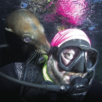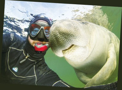 日前,47岁的潜水员Will Clark整理了一组非同寻常的自拍照,和他一起自拍的都是海洋生物。这些动物包括海狮、海龟、海牛等等。