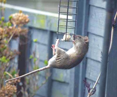 杂技鼠登场!英国一老鼠单爪悬空偷鸟食