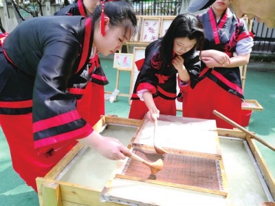 日前,上海市信息管理学校举行中华文化艺术传承项目年展活动。古籍装帧、古法造纸、旗袍书签等12个项目惊艳亮相,同学们用自己的巧手匠心,向在场嘉宾展示“00后”学子传承优秀传统文化的热情。 记者 徐红清 摄影报道 创新,让古法技艺焕发新生机 折页、齐栏、打孔……该校文物保护专业二年级的武赟雯,现场向记者展示古籍装帧的步骤。“这也是我们的专业课之一,通过古籍装帧,能够了解古籍的基本构造,为古籍修复打基础。”她告诉记者,看似简单的装帧,其实很考验耐心和细致。“就齐栏这个步骤,一开始练习的时候,20页纸就要花费40分钟的时间。”当然,随着熟能生巧,现在,她能在20分钟内完成一本装帧。 在“吉祥结艺——中国结展示”展位前,同学们聚精会神地编织各种形状的中国结,以祥云结、纽扣结混搭而成的“中国结写意”作品,显得格外有新意。“中国结不仅有很多手工类的技巧,其中更蕴含着无限创意。”指导老师张静怡希望给同学们灌输这样一种理念,即使是最简单的编织技巧,加上独具匠心的创意,中国结制作在今时今日,依旧有着无限生机。 “妙手书医”、“玉轴锦囊”、“方寸钤印”、“细针密缕”、“宗匠陶钧”……展示现场听到这些匠心独具的名称,令人遐想清风雅韵的古代时光,瞥见那些在传统文化中闪闪发光的遗珠,这些名称分别代表着古籍装帧、书画装裱、藏书印篆刻、旗袍书签缝制、紫砂鉴赏与创意、古法造纸、中国结在内的“12个民族文化传承项目”,成为该校“民族文化节”的重要内容。 让传统文化“活”在当下 “让传统文化‘活’在当下。学校一直把民族文化传承教育作为学校德育工作的重要内容之一。”于惠芳副校长表示,该校邀请了多位中国非物质文化遗产传承人为顾问,与专业建设相结合,开设了《古籍修复》、《陶瓷鉴 赏》课程,通过课堂教学、社团活动、才艺展示等多种形式,使得理解、认同、推崇中华民族传统文化之心在校园里生根发芽,茁壮成长。 能穿上中华民族传统服饰,融入到中华民族传统技艺与文化的学习中,是信管学子校园生活的一大乐趣。精心设计的专用教室布置、制作精良的宣传张贴版面,以及各种民族文化校本培训手册,使校园内洋溢着浓厚的民族文化氛围。 这样的教育传承不仅在校内开展,学校还通过各种平台,向区域内其他学校的学生,社区居民,甚至向西藏等边远地区的群众普及推广。 在上海教育博览会、上海市学生职业体验日、对外国友人的开放活动等平台,信息管理学校所展示的中华传统文化与技艺让参与者感受到了中华传统文化的魅力,广受热捧。