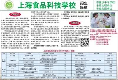 市重点中专学校 市级文明单位 市级花园单位 学校简介 上海食品科技学校坐落于金山区朱泾镇,隶属于金山区教育局,是一所全日制公办中等职业学校,现有在校学生1200多人,教职工160人,是上海市文明单位、上海市高技能人才培养基地、上海市百所重点建设中职校、上海市中职系统行为规范示范校和上海市花园单位。 学校设有食品加工与安全检测和汽车与智能制造两大专业群。现有食品科学与工程中本贯通试点专业,农产品加工与质量检测、汽车运用与维修技术中高职贯通试点专业,以及食品生物工艺、食品安全与检测、农产品保鲜与加工、中餐烹饪与营养膳食、汽车运用与维修、汽车美容与装潢、机械加工技术(3D打印技术)、计算机应用等专业。其中,食品生物工艺专业为上海市重点专业、上海市精品特色专业、上海市品牌专业。 汽车运用与维修专业与英国诺丁汉学院开展合作,引入英国汽车工业学会(IMI)质量保证体系,建成IMI国际职业资格认证运行中心,按照IMI轻型汽车维护与维修课程标准进行学习,考核后获得IMI颁发的轻型汽车维护与维修一级技能证书。 学校坚持融职高、中专、高职、本科为一体,升学与就业并举,职前与职后联动发展的多层次、多规格、多元化的办学体系,以“明志修德,自强不息”为校训,努力培养知识型、发展型技术技能人才。 近年来,学校教育教学质量稳步提升。学生就业率始终保持在98%以上,升学率始终保持在95%以上,赢得了社会、企业及学生家长的一致好评。 学校精神:艰苦奋斗、奋发向上、坚韧不拔、追求卓越 办学宗旨:面向市场、创新发展、崇德精技、服务社会 办学理念:管理立校、质量兴校、创新活校、品牌强校 就业前景 近年来,学校建立了以用人单位、学校就业办、就业指导师构成的三级就业网络,积极开展就业指导和就业推荐。2017年毕业生就业推荐率100%,就业率为98.93%。特别是食品类专业的毕业生深受广大食品企业的欢迎,学校与上海的近两百家企业保持长期紧密合作,如光明乳业、太太乐、上海石库门、中粮融氏、统一企业、南侨食品、上海艾丝碧西食品、鑫博海、青岛啤酒、米其林轮胎、汉钟精机、圣东尼针织机械、上汽集团(车享家)、蓓华汽车修理有限公司、和辉光电等。 学校地址:上海市金山区朱泾镇万安街395号 交通车辆:各区通往金山区朱泾镇各公交线路; 地铁1号线莲花路站转莲金、莲朱专线 邮编:201599 学校网址:http://spkjxx.jsedu.sh.cn/ 电子邮箱:1842715567@qq.com 联系电话:021—57338869(招生办) 18017131165(胡老师) 18017131112(王老师) 18017131169(顾老师)
