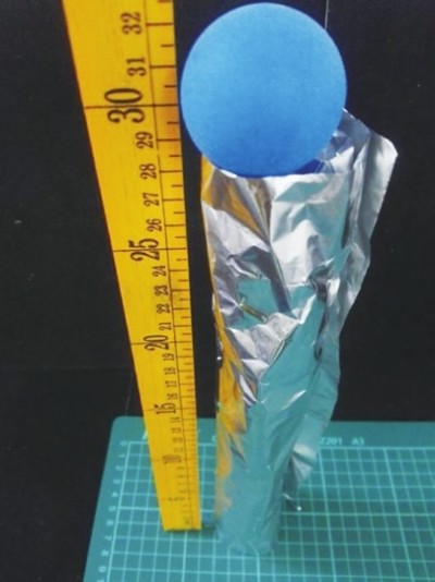 你可知道目前中国在建的第一高楼是在哪里吗?高银117大厦结构高度达596.5米,坐落在天津。大厦外观以银色反光玻璃为主,熠熠发光。建筑设计灵感采用天圆地方的理念,大楼整体方方正正,塔楼顶部为巨大的球形钻石造型,顶部的球形钻石象征着一颗璀璨的明珠。 不过这座高楼还没有竣工,那我们不妨今天来完成搭建银色高楼吧!用铝箔纸代替银色玻璃,乒乓球代替球形钻石,赶快来试一试吧! 图文/王承翀 【DI竞技】 挑战:将一张铝箔纸做成高塔,并支撑一个乒乓球。 要求:运用想象力在10cm×10cm的区域内用一张铝箔纸搭建尽可能高的塔,并支撑一个乒乓球,球的最低点要高于桌面20cm以上。 材料:1张铝箔纸(30cm×30cm),1个乒乓球 【创想攻略】 我们的挑战是要制作尽可能高的塔,材料单一,只有铝箔纸,可铝箔纸非常的薄且脆弱,如何能做高塔呢?还要求能够放置一个乒乓球在上面,需要有一定的承重力,而且有限制的底面积10cm×10cm。 那要想一想如何能让薄如羽翼的铝箔纸变得坚固起来呢?一层铝箔纸也许很薄,但两层呢,或多层呢,会不会坚固很多呢?我们不妨来试一试将铝箔纸卷起来,看看能否竖立并承重一个乒乓球。可以看到,乒乓球稳稳地卧在铝箔纸上,而且高度大于20cm。但这样的高塔并不算非常高,我们还要继续想想办法呢! 【思维升级】 我们发现铝箔纸经常被用来做包装材料,当它包裹物品时,自身会变得更加坚硬。基于这个经验,我们试着将铝箔纸撕成条状,并卷成纸棍,发现真的很坚固哦!这样我们就可以用铝箔纸棍来搭建高塔啦,按照“上轻下重”的原则,下层铝箔纸棍耗材多,要重一些,上层铝箔纸棍要轻一些,因此这里要注意纸棍的粗细不同哦! 卷好的铝箔纸棍先搭建出三脚架形的底座,作为高塔的下层部分。中间连接部分用一根铝箔纸棍进行捆绑,并做成球托,用来放置乒乓球。 对于高塔的上层,需要比较轻的铝箔纸棍,但是轻薄的话不易承重,会无法竖立起来。你是否想到了将它卷成螺旋状来变得坚固呢?这样我们就可以做出一个非常高的高塔了,测一下高度有86cm呢! 【挑战延伸】 同样是一张锡箔纸,如果把乒乓球换成一枚硬币,你会有什么更好的创意吗? 【分享交流】 你有什么更好的点子吗?欢迎来稿分享给更多人,让大家为你点赞! 投稿邮箱:dishtech@126.com