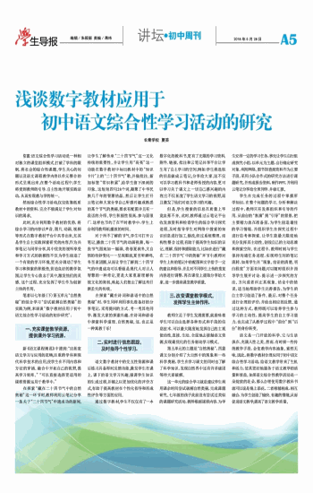 浅谈数字教材应用于初中语文综合性学习活动的研究