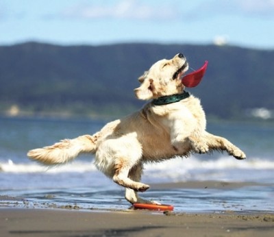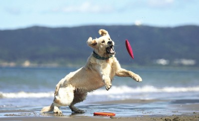 小狗海边接飞盘 诠释“行走的表情包”