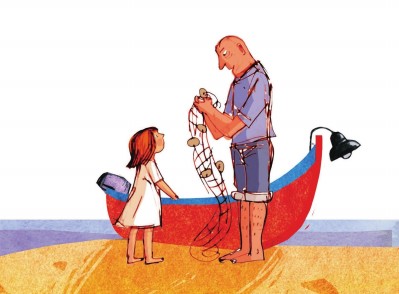 【意】奎多•瓜左/著 【意】茱莉亚•欧瑞沙/绘 吴雨欣/译 出版社:人民文学出版社 天天出版社 内容概述:这是一个关于大海、假期和幻想的故事:一个小岛,一座灯塔,一段悠长的海边假期。小女孩茱莉亚和外婆一起种罗勒,做意大利面,吃下午茶,去集市买鱼,收集海滩上五彩的玻璃和石头。她幻想着对岸住着一名老水手,可能曾是名海盗?他会欢迎她的到来吗?会请她吃下午茶吗?这天,渔夫叔叔答应茱莉亚,如果她起得够早,就能搭上去对岸的船…… 1 也行是一位老水手。 在世界的某个地方,有一个很小很小,像是黏在山丘上的村庄,它坐落在直直探入海中的小山丘上。 山丘的尽头是沙滩,再远处就是海,海中有一座小岛,岛上矗立着一座古老的灯塔。 有个小女孩儿,名叫茱莉亚,常常站在沙滩上遥望海中的灯塔。 茱莉亚心想:“要是有一艘带桨的小船,我就可以到那座小岛上去。小岛那么小,还可以绕着它走一走,真的好想好想去那里呀!” 但是茱莉亚并没有带桨的小船。 有时茱莉亚对奶奶说:“奶奶,我们去小岛吧?” 奶奶会说:“好是好,但是那里太远啦!” “我觉得没那么远,”茱莉亚说,“我们只是缺少一艘小船对吧?” 2 “对,”奶奶说,“什么时候我们有小船了,我们就去那里。” 就这样,茱莉亚常常幻想着能拥有一艘小船。它会是一艘漂亮的蓝白相间的小船,可以带着她和奶奶,划向小岛。 当然,必须是茱莉亚划船,奶奶年纪太大了。茱莉亚幻想着,当她们到达小岛,从船上下来后的第一件事就是去灯塔。 灯塔不高,里面或许很狭窄,只有一条非常陡的阶梯可以爬上去。奶奶和茱莉亚进入灯塔,开始顺着阶梯往上爬。 当她们爬到塔顶时,发现那里住着一位老水手,这位老水手曾经做过海盗,但那已经是很久以前的事了。 老水手穿着一件漂亮的红白条纹的毛衣,戴着一顶蓝色鸭舌帽。 当他看到快要登上塔顶的茱莉亚和奶奶时,立刻上前去帮忙,好让奶奶爬完最后几级台阶,“别担心女士,您快扶着我的胳膊。”老水手说。 3 哇哦!真是太令人惊讶了!在水手的胳膊上,有着许多美丽的图案:锚、轮船、树、海浪、海豚、小房子、一只小鲸鱼和十二个心(每一个都代表着他爱过的女孩儿)。 “谢谢啦,”奶奶说,“您真是一位绅士的海盗。” “我早已不是海盗了,”老水手说道,“我现在是灯塔的守塔人。” “但是,”奶奶带着一点怀疑说,“一日海盗,终身海盗。” 这时老水手对茱莉亚眨眨眼,说:“你奶奶很了解海盗啊,是吗?” “相当了解!”茱莉亚骄傲地回应他。然后在水手的家,也就是那座灯塔里,他们一起吃了用盐腌渍的凤尾鱼。因为吃了很多咸咸的凤尾鱼,茱莉亚渴极了,只能不停地喝水。 然后茱莉亚就继续幻想她和奶奶回到家,匆忙准备下午茶的情景。奶奶曾经真的泡过茶。 茱莉亚问奶奶:“奶奶,岛上住着谁?”奶奶说:“谁知道呢,可能只有海鸥,也可能是一个像你一样充满好奇心的小姑娘。”