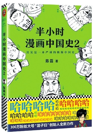 作者:陈磊(笔名:二混子) 出版社:海南出版社 作品简介:本书用漫画形式演绎上下三千年中国史,爆笑又正经,“贱萌”又靠谱。手绘和段子,二混子就捋出清晰的历史大脉络:春秋战国像个班级、大秦过把瘾就死、三国就三大战役、魏晋乱世多奇葩、南北朝盛产败家子、大唐酷炫民族风……掀开纷繁复杂的历史表象,略去无关紧要的细枝末节,每一页都有历史段子,每三秒让你笑翻一次,而二混子手绘的帝王将相则是又贱又蠢萌:秦皇、汉武、唐宗、宋祖、曹操、孙权,全都和你我一样,有优点和缺陷,有朋友和敌人,他们在历史关键节点迸发出的惊人能量铸就了三千年的精彩中国史。而你在笑出腹肌的同时,不知不觉已经通晓了历史。