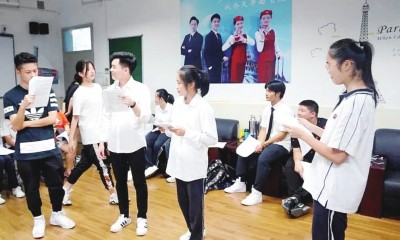 9月2日,一则原创音乐剧招募演员的消息通过学校微信公众号发布后,引起了上海市商贸旅游学校许多同学的关注。在150多个报名者中,不仅有2017级的同学,还有不少刚进校的2018级新生。9月4日、9月6日两天面试,现场甚至排起了长队。 记者 徐红清 照片由受访学校提供 同学们的多才多艺出乎评委老师的意料——2018级西餐烹饪专业的张云涛同学不仅会自弹自唱,还会作词作曲;2017级空中乘务专业的马迎莹同学是学校新媒体部的小编,平日里大家只知道她文笔好,但在这次海选中,她表演了热播剧《延禧攻略》的片段,还一人分饰两角,让熟悉她的老师和同学都非常惊讶……最终,有23个同学成功晋级。 这是商贸旅游学校德育处牵头筹备的首部原创音乐剧,将参加2018年上海市中等职业学校学生音乐剧比赛。校团委书记杨璐说,音乐剧是一种结合歌唱、对白、表演和舞蹈的舞台艺术形式,对同学们来说,把故事情节以及所蕴含的情感用音乐剧来表现,挑战很大;但同时,这种艺术形式是大家喜闻乐见的,参演音乐剧对于提升同学们的艺术素养和综合素质也很有帮助。因此,学校大力支持此项活动的开展,校艺术总辅导员、音乐教师等都将参与指导学生。 对于没能从海选中晋级的同学们来说,他们也没有特别失落,因为评委老师给每个参加面试的同学,都提出了专业的指导意见,比如朗诵时应该如何发音、肢体动作如何才能更加协调等。 事实上,在演员招募启动前,学校已经投入大量精力,完成了剧本创作和作词编曲等工作。值得一提的是在剧本创作环节,学校通过多次采风,从师生那里征集了许多令人印象深刻的校园故事,最终确定了音乐剧的主线——中职生在专业学习中通过不懈努力,展现出当代青年的风采。之后,学校又邀请专家进行指导,完成了剧本的撰写及修改。这样“接地气”的剧本,将对接下来的排练起到事半功倍的效果。 目前,晋级的23个同学开始了第一次排练。“我们没有马上确定每个人的角色,而是让大家一起熟悉剧本,并展开形体、台词、声乐等基本功的培训。”杨璐说,接下来,学校还将每周开展系统排练。