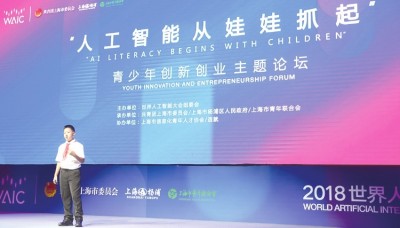 2018世界人工智能大会·青少年创新创业主题论坛于近日举行,“上海市青少年人工智能创新实践基地”同时揭牌,来自全市的大中小学生代表近300人出席了本次论坛。 记者 朱筱丽 上海市青少年人工智能创新实践基地揭牌 本次论坛由世界人工智能大会组委会主办,共青团上海市委员会、杨浦区人民政府、上海市青年联合会承办。 市人大常委会副主任徐泽洲寄语道,对于青少年一代而言,你们是中国特色社会主义事业的建设者和接班人,是新时代的见证者和奋斗者,希望青年一代在这里开拓眼界,启迪智慧,加强人工智能知识的学习,加强探索实践,为上海人工智能等新兴领域发展注入更多“青春动能”。 在“人工智能与教育”主题论坛中,学生代表施季安、朱铭浩与观众分享了他们的人工智能创新项目,由流利说联合创始人、首席科学家林晖作题为《人工智能时代的教育3.0》的演讲;在“人工智能与未来人类”主题论坛中,中学生代表江蕴琪讲解了自己的人工智能小发明,由BrainCo创始人韩璧丞作题为《人工智能的下一代技术——脑机接口》的演讲;在“人工智能与创业”主题论坛中,创业者代表王嘉喆介绍了自己的人工智能创业项目,脉策数据联合创始人汤舸作了题为《我们还需要什么样的AI?》的演讲。 活动现场,市政府副秘书长、市国资委党委书记、市国资委主任宋依佳,共青团上海市委书记王宇和中共杨浦区委书记李跃旗共同为“上海市青少年人工智能创新实践基地”揭牌。 中小学生代表成人工智能大会最小演讲者 初生牛犊不怕虎,本次世界人工智能大会·青少年创新创业主题论坛上最引人注目的莫过于上台演讲的中小学生代表。 来自上海市徐汇中学初一的朱铭浩同学,发明了“具有婴儿状态监测及自动调节功能的‘豆丁拍打器’”,这是献给二孩家庭的礼物。豆丁是朱铭浩弟弟的小名。“刚出生的时候,他两小时要喝一趟奶,妈妈一个晚上要起来好多趟。有一天晚上,我听到隔壁房间里传来阵阵哭声,我跑过去一看,原来是豆丁又哭了,妈妈抱着豆丁,轻轻地拍他,豆丁很快就睡着了。可妈妈把他放床上,屁股才接触到床,他就哇哇哭起来,真的比传感器还灵敏。所以妈妈又不得不再把他抱起来,再哄上很久,特别辛苦。我很心疼妈妈,所以我想,如果做个机器来代替妈妈拍拍,哄豆丁睡觉,妈妈就可以好好休息了。” 于是,朱铭浩先设计了豆丁拍打器的原理图,它的原理是:通过一个减速电机,带动一个偏心的凸轮,偏心凸轮旋转的时候,顶起一个手掌形的拍打棍,拍打棍落下的时候,利用下落的重力进行拍打。设计好原理后,朱铭浩先观察了妈妈拍打弟弟豆丁的频率和力度,确定了电机的转速、手掌重量和凸轮长短,制作出第一代“豆丁拍打器”,手动开关,有每分钟40和80下两档频率。在弟弟身上使用过后,效果很好。“我认为人工智能的核心是学习,而它的前身应该是模仿。或许我们可以从一些简单的模仿、控制入手,让我们离AI近一些,更近一些。”朱铭浩说。