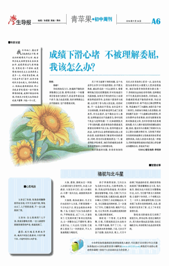 我今年初二,最近学习成绩有点下滑,考试的时候情况不太好,被老师当成反面典型当众在班里批评,我觉得很生气很难接受。家里还有一个弟弟,我觉得妈妈的关注点在弟弟身上更多一点,对我有些忽略。我们家去年买了房子,经济方面的压力会比较大,同时弟弟还小,妈妈也要照顾弟弟,所以当我在学校遇到一些不愉快事情的时候,我都不敢告诉妈妈,怕她压力会更大也怕她会说我不懂事,只能一个人哭。 同学: 你好! 你怕妈妈压力大,把遇到不愉快的事情都自己扛着,看得出你是一个很懂事且很有担当的孩子。但是你毕竟还是个孩子,能力还是有限,很多事情靠自己并不能做好,这个你要意识到。 关于学习成绩下滑的问题,这个也是学生在学习中常见的情况,你不要太焦虑。建议你总结一下自己的学习,看看哪些地方是比较薄弱的,针对性地进行巩固加强。如果有不明白的可以主动请教老师或者同学,这有助于提高学习成绩,也有利于你与他人的交流。有的时候,不一定是我们不用功,也许是学习方法的问题。你说你被老师当成了反面典型,并当众批评,这个确实会令人难受,这样的做法也不是最妥当。你可以找个机会与老师沟通一下,比如请教他关于学习的问题,或者请他给你提提意见看看还有哪些不足之处,给你些建议来改进。这样可以让老师看到你自我上进的态度,也能帮助你了解老师对你的看法。同时,你也可以委婉地表达一下,被老师批评很难受。相信你的诚意会改善你和老师彼此之间的看法的。 关于家庭的问题,你说你妈妈的关注点在弟弟身上更多一点,这也许是因为弟弟年纪小需要大人更多的帮助吧。相信如果你和你弟弟年龄互换一下,你妈妈也会如此对待你的,这种情况并不代表是家长忽略你。尽管如此,当你遇到困难或不愉快的时候,你应该主动跟家长讲,而不是自己独自默默地哭。哭是解决不了问题的,而你只是个初二的学生,你的知识和能力是有限的,很多问题不是你一个人能解决和承受的。所以你要学会寻求帮助,而首先能够求助的对象就是父母。也许在你看来是很难的问题,在大人眼中就是很容易解决的问题。因此,建议你今后遇到了困难可以先自己想办法解决和应对,当你找不到好方法的时候就要向父母或者其他长辈或老师求助。向他人求助本身也是一种能力,同时你能够快速地从他们身上学会解决问题的办法。你说是不是? 12355心理咨询师:季明律 小伙伴们如果遇到成长的烦恼想找人倾诉,可以拨打12355青少年公共服务热线(021-12355)或登录青小聊网站(www.sh12355.com)和我们专业的心理老师沟通哦!(你的个人信息我们会为你保密。)