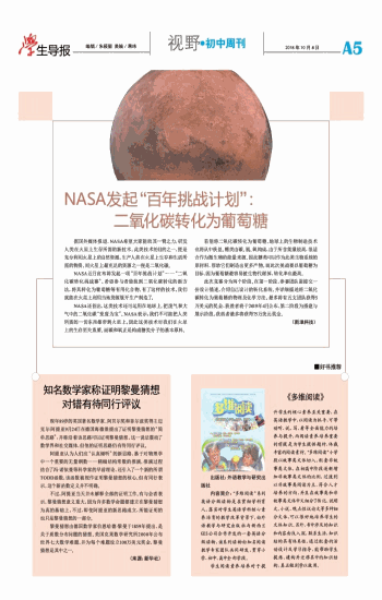 NASA发起“百年挑战计划”:二氧化碳转化为葡萄糖