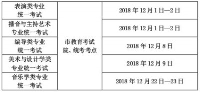 2019年上海市普通高校艺术类专业统一考试日程安排如上: