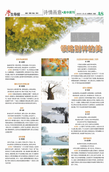 初冬早起寄梦得 唐·白居易 起戴乌纱帽,行披白布裘。炉温先暖酒,手冷未梳头。 早起烟霜白,初寒鸟雀愁。诗成遣谁和,还是寄苏州。 ★赏析:初冬时候天气又更冷了一些,寄诗给远方的朋友,互相慰藉是一件温暖的事情。白居易初冬早起,穿着白色衣服,炉温手冷,屋外的烟霜和鸟雀所构成的寥落图景也容易使人生出几分哀愁。这时候写首诗寄给朋友,也许是会得到些许慰藉吧。 酬乐天初冬早寒见寄 唐·刘禹锡 乍起衣犹冷,微吟帽半欹。霜凝南屋瓦,鸡唱后园枝。 洛水碧云晓,吴宫黄叶时。两传千里意,书札不如诗。 ★赏析:收到白居易的诗,刘禹锡也回赠了一首给他。时间还早,鸡鸣时分,看到白霜落满了南屋的屋顶,碧云黄叶二句,与杜甫“渭北春天树,江东日暮云”有异曲同工之妙。我们虽然不在同一个地方,却都能面对着这碧云黄叶。此时与其给你写信,还不如用写诗来表达对你的思念更为恰当。 初冬 唐·杜甫 垂老戎衣窄,归休寒色深。渔舟上急水,猎火著高林。 日有习池醉,愁来梁甫吟。干戈未偃息,出处遂何心。 ★赏析:作者从初冬时节的景色写起,天凉衣薄,水上渔舟归来,林间猎火起伏。习池又叫习家池,是晋朝山简经常游玩的地方,后多借指园池名胜。作者天天流连于山水之间,但心中却仍有救世济时的心愿。诸葛亮隐居南阳时曾作《梁父吟》,后来遇到明主,实现了自己的抱负。那自己在这战火频仍的时代,是否也应该像诸葛亮那样,努力去实现自己的抱负呢? 初冬即事 宋·周端臣 初冬天气暖,小似立春时。万树无多叶,千花试一枝。 天红霜有信,星晕雨先期。怕见梅花发,愁怀未辨诗。 ★赏析:中国民俗里有“十月小阳春”的说法。这首诗就是写在这样一段时间里。“万树无多叶,千花试一枝”写出初冬时天气回暖,仿佛有春景一般,然而树叶都已凋落,两相对比,景象奇特。看天气也仿佛会有霜、有雨。冬天踏雪寻梅是文人惯有的雅趣,而作者却因怕自己到时候写不出美好的诗句而发愁。末句一反前人催雪盼梅的意思,别出心裁,用诗人的真实心理活动给整首诗增添了一抹活生生的生命色彩。 次孟坚初冬晴和见梨桃二花作 宋·郑侠 十月南天尚暑襟,幽花何怪动清吟。 半扉素蕊呈修径,几朵夭红出茂林。 地借小春回暖气,日匀疏影转轻阴。 惟应幕府多才俊,不负行台醉赏心。 ★赏析:这首诗详细地描述了初冬时节“十月小阳春”带来的花开景象,虽然已经到了农历十月,但是南方天气还未变冷,加上“十月小阳春”的天气现象,梨花桃花竟然都纷纷盛开,和春时毫无二致。诸位诗人才俊都当作诗一首,才不辜负如此美好的景象呀! 初冬小园寓目 宋·张耒 独树翘寒色,闲云澹落晖。新霜黄菊重,久雨翠梧稀。 暝雀鸣还啄,高乌定更飞。敝貂犹故在,卒岁免无衣。 ★赏析:这首诗写了初冬时的园中景色,天高云淡,园中的树木也显得分外萧疏。菊花还未开残,在霜雪之后也染上了一分霜色。梧桐也未落尽,经过雨打风吹也几近凋残。群鸟未全归巢,但也没有了之前的活力。还好留有旧时的衣服,不至于在这寒冷的季节没有衣服穿。 渔家傲 宋·毛幵 极目丹枫迎霁晓。山明水净新霜早。 燕去鸿归无事了。天渺渺。风吹平野低寒草。 渐过初冬时节好。寻梅踏雪城南道。 追忆旧游人已老。欢更少。孤怀拟共谁倾倒。 ★赏析:上片描写了初冬的山水景色,山明水净,苍天辽阔,燕去鸿归。下片点出时节,是初冬时踏雪寻梅的情致。然而景色依旧,斯人渐老。想到此处心中更加惆怅,此时想举杯对饮,却也都不知应该何人与共。 菩萨蛮初冬 宋·赵长卿 败荷倒尽芙蓉老。寒光黯淡迷衰草。 行客易销魂。笛飞何处村。 云寒天借碧。树瘦烟笼直。若个是乡关。夕阳西去山。 ★赏析:秋天的残荷到初冬也都已经败尽,天际的衰草分外萧瑟。伴着傍晚时分不知何处传来的笛声,外出的游子此时心中的忧愁倍增。看天上的云似乎也带着一份寒意,天色分外清明澄澈。已经落尽叶子的树显得格外细长,远处人家的炊烟也因为无风而分外笔直。这些更加引起游子的思乡之情,但是故乡到底在何处呢?只看到夕阳又落下了西山。