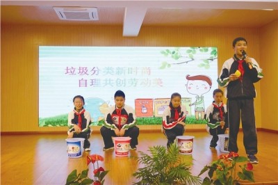 近日,上海市二十五中举行了名为“垃圾分类新时尚 自理共创劳动美”的关于垃圾分类的推进活动。 在活动中,学校环保组的李蓓老师向大家介绍了垃圾分类的重要性。学校明确垃圾分类有利于减量化、资源化和无害化处理,在许多城市面临“垃圾围城”的当下,值得推广。实际上,早在2000年,北京、上海、广州等城市已开始垃圾分类试点,目前不少城市都在探索垃圾分类的道路。而上海开展“垃圾分类”起步较早,在2009年世博会举办前,上海便正式在全市范围进行大规模的垃圾分类,当时主要分类回收的是玻璃瓶、利乐包等低价格可回收物。在此过程中,上海设计了“绿色账户”积分鼓励居民进行源头分类,并一直沿用至今。 通过李蓓老师的宣讲,师生们了解了地球资源并不是取之不尽、用之不竭的。保护环境,合理利用资源已成为时代赋予我们的共同责任。在活动中,预备、初一年级带来的小品表演《垃圾桶的秘密》,向全体师生阐述了在校园中如何具体实施垃圾分类。学生扮演的“小可”(可回收垃圾桶)、“小干”(干垃圾桶)、“小湿”(湿垃圾桶)、“小害”(有害垃圾桶),惟妙惟肖,让全体师生了解了在校园中如何正确处理垃圾。随后,学校绿叶环保社团的学生们向大家介绍了利用可回收物品制作成的环保节能的一些作品。 在活动后,学生把“垃圾分类”的理念再一次带回家,通过“小手牵大手”和家长一起在杨浦绿化市容的微信公众号上进行了“垃圾分类伴我成长”的承诺。让垃圾分类活动走进家庭、社区,养成垃圾分类的好习惯,为建设和谐美好家园贡献自己的力量。