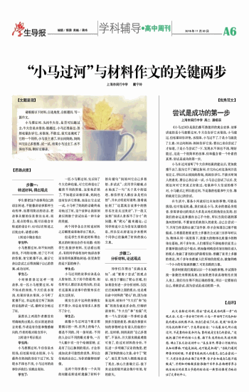 【文题呈现】 请根据以下材料,自选角度,自拟题目,写一篇作文。 小马要过河,先问牛大伯,是否可以趟过去。牛大伯说水很浅,能趟过。小马正准备过,忽然松鼠告诉它,水很深,不能过,前天还淹死了它的一个同伴。小马没主意了,回去问妈妈。妈妈叫它自己多想想,试一试。结果小马过去了,水不深也不浅,刚好过膝盖。 【思路点拨】 步骤一:转述材料,得出观点 学生要把这个故事用自己的语言转述,不能像讲故事那样生动传神,而要用简洁的语言,把故事关键的信息表达出来,而且,观点的得出,既可以暗含在转述的语言中,也可以在转述之后亮出来。请看示例: 1.转述中隐含观点 学生甲: 小马想要过河,却不知河的深浅。不同的动物,给了它不同的答案,使它犹豫不决。最后它亲自尝试之后得到属于自己的答案,成功过河。 学生乙: 小时候曾读过这样一则故事,有一匹小马想要过河,却不知水的深浅。牛大伯说水很浅,松鼠却说水很深。小马听了犹豫不定。幸运的是它听了妈妈的话选择试一试,最终安全地过了河。 虽然以上两段作者都没有明确地亮出观点,但从转述的语言来看,作者是有价值和情感倾向的,作者的观点暗含其中。 2.转述中明示观点 学生丙: 小马想要过河,牛伯伯说水很浅,但松鼠却说水很深。小马最终在妈妈的劝告下过了河,发现水不深也不浅。小马过河的故事告诉我们:实践出真知。 学生丁: 一匹小马要过河,先后问了牛大伯和松鼠。可它们却给出了截然不同的答案,这使他茫然了,不知道应该相信谁。妈妈也没有告诉它答案,而是让它去试一试,小马听了妈妈的话最终成功地过了河。这个故事让我深刻意识到敢于尝试也是一种生命的美丽。 两个同学各自在转述材料之后顺理成章地带出了观点。 但是学生在转述材料得出观点的时候也会存在问题:有的学生直接抄材料,无法看出观点;有的同学添枝加叶地讲故事而非简明扼要地转述;但更典型的是下面的例子: 学生戊: 小马过河的故事应该是众人皆知的。关于其中的道理,相信所有人都应该是明白的。但是在这篇寓言故事中的情形实在是太过美好。 现实生活中这样的事情实在不算少,却总是有很多人拿捏不了分寸。 学生己: 就像小马过河这个寓言想要揭示的一样,世界上的每个人都是不同的。同一条河流,不同的人会以不同的眼光看待。一万个人眼中有一万个哈姆雷特。正是有了自己独到的观点,才会形成如此多可能性的世界。所以自信地活出自己,为你的独特而骄傲。 这两个同学都有一个共同的问题是转述时遗漏了材料中的关键句“妈妈叫它自己多想想,多试试”,戊同学只蜻蜓点水地说了一句“关于其中的道理,相信所有人都应该是明白的”,并未点明是何道理,接着就扯到了“这篇寓言故事中的情形实在是太过美好”,下一段又说到“很多人拿捏不了分寸”的问题,离“靶心”越来越远;己同学转述中完全没有关键的信息。所以仅从转述这步来看两个同学已经偏离了材料的核心立意。 步骤二:分析材料,论述观点 同学们在得出“实践出真知”,或“要勇于尝试”的观点后,相当于圈出了靶心区域,但如果没有进一步分析材料,仅仅泛泛地阐释上面的观点,还是难以命中材料的“靶心”的。因为如果这样,材料中“牛大伯”和“松鼠”的劝告就是多余的。仔细研读材料,“牛大伯”和“松鼠”代表一个人尝试做一件事时会遇到多方面的意见,抑或在探索未知的事物时会有前人经验的干扰,这时候,妈妈说的“自己多想想”,不盲从,并大胆实践就难能可贵了。经过对材料的分析,不仅进一步明确了议论的角度,把握了材料的核心立意,命中了“靶心”,而且更为深入细致地论述了观点。核心立意确立后,接下来议论的展开就会集中有效,有的放矢。 【优秀范文】 尝试是成功的第一步 上海市闵行中学 高二 潘杨辰 《小马过河》是我们都耳熟能详的寓言故事,故事讲述的是小马想要过河,牛大伯告诉它水很浅,小马能过,但松鼠却告诉他,水很深,小马过不了,于是小马就没了主意,回去问妈妈,妈妈告诉它说,要自己亲自尝试了才知道。于是小马尝试了一下,发现水不深也不浅,刚好能过。这是一个很简单的故事,但却蕴含着一个朴素的真理:尝试是成功的第一步。 小马在过河前听了牛大伯和松鼠的建议后,更加犹豫不决了,因为它不了解这条河,在它内心对这条河并没有定义,所以回去找妈妈咨询。妈妈告诉它,不能光听别人的意见,要自己亲自试一试。小马自己尝试了以后,发现这河对它来说正好能过,松鼠和牛大伯说的都不对。小马最后之所以能过河,不是靠的松鼠和牛大伯,靠的就是它自己的尝试。 在生活中,那条小河就好比未知的事物,可能是挑战,也可能是机遇。我们就是小马,其余的都是旁观者,旁观者给出的观点大多是从他们的角度出发的,但我们的命运是掌握在自己手中的。所以当我们遇到那条河的时候,不要盲目采纳别人的意见,自己去尝试一下,只有当你真的去做了这件事,你才会知道自己能不能做成。古希腊思想家亚里士多德在公元前三百多年时认为,物体从同一高度落下,质量大的物体比质量小的物体先落地。两千多年来,人们都坚定不移地相信亚里士多德所提出的这个观点,然而伽利略没有盲目相信前人的观点,他做了著名的比萨斜塔实验,推翻了亚里士多德的理论。两千多年来都被人们所相信的观点,被