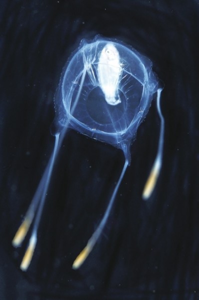图片中,有鱼鳍鱿鱼、狮子鱼幼鱼、浮鱿鱼幼鱼、海螺、潜鱼幼鱼以及真蛸幼鱼等,这些深藏海底的神秘动物外形奇特,看上去就如同外星生物一般,令人大开眼界。